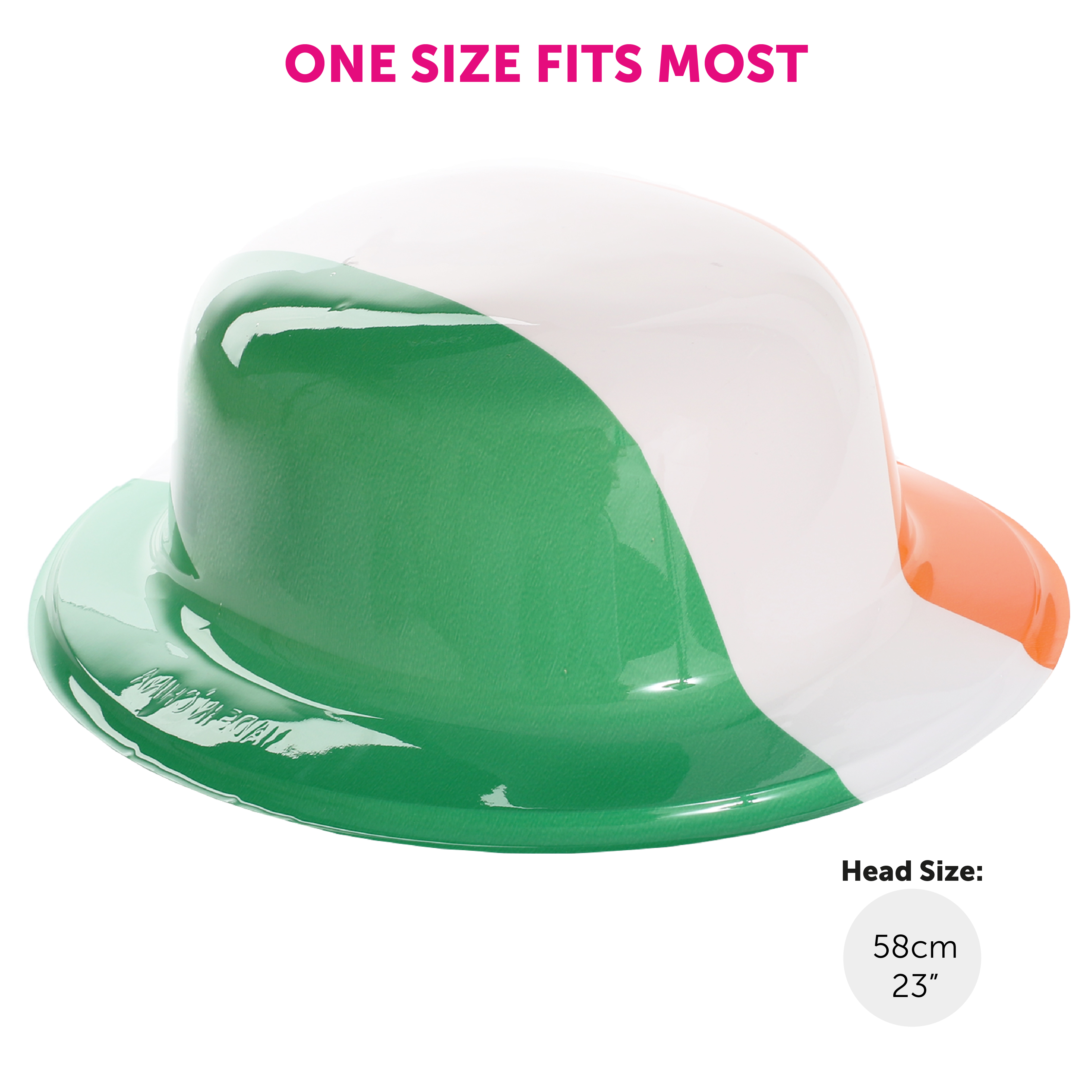 ONE SIZE FITS MOST: Being a very comfortable size for most Adults, these Irish Bowler Hats are a head size measuring in at 58cm (23"), the perfect accessory for all things Irish!