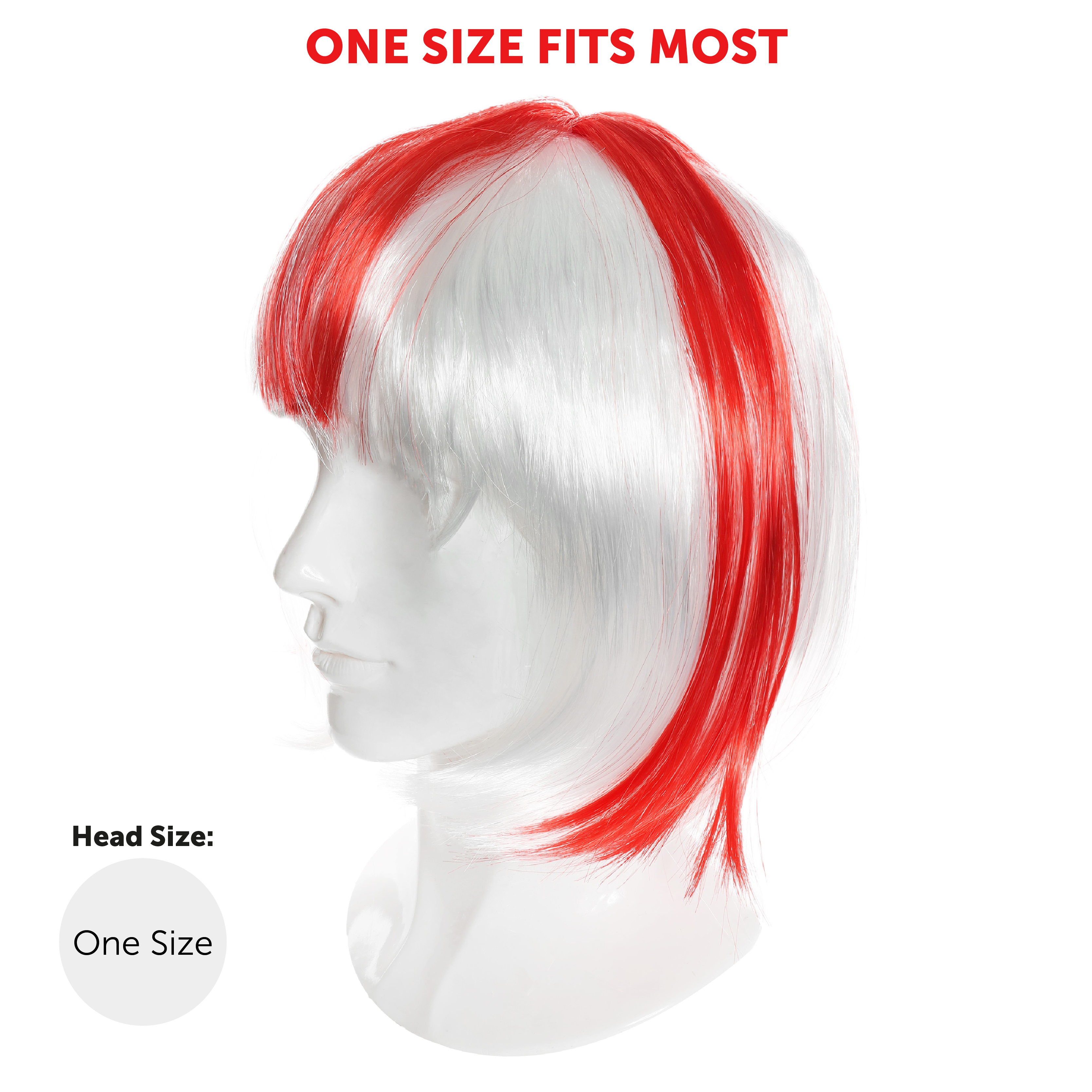 SET INCLUDES: This England Supporters Set includes a short Bob Wig with Red and White Hair designed to resemble the St George's Cross, a Palette of White Face and Body Paint, and a Palette of Red Face and Body Paint, the perfect look for any English celebration!