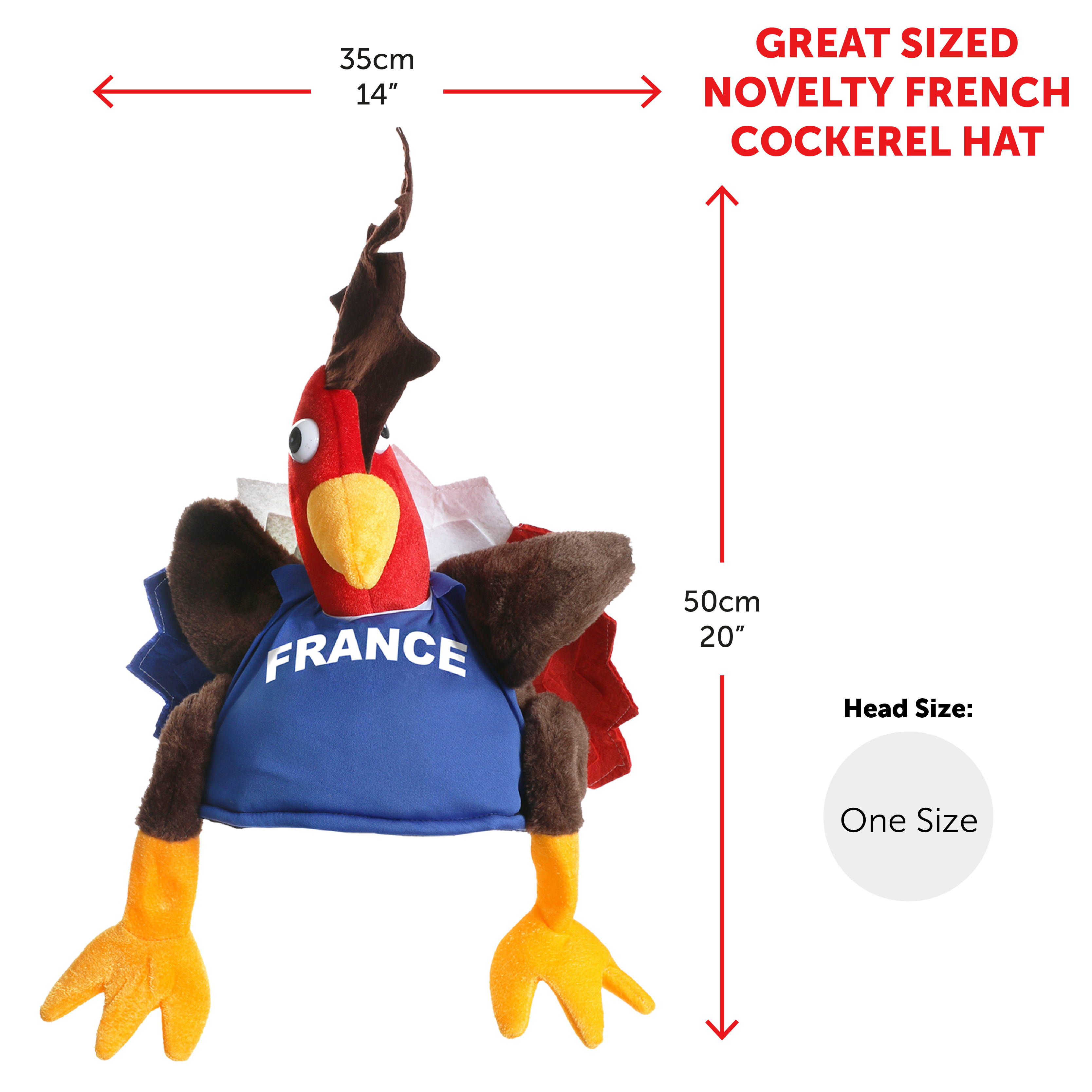 ONE SIZE FITS MOST: Being a very comfortable one size, this French Cockerel Hat is suitable for most Adults. The Cockerel measures approximately 50cm (20") in height, from the tip of the toes to the top of the head, and approximately 35cm (14") in width, this is perfect for all French Sporting Events and more!