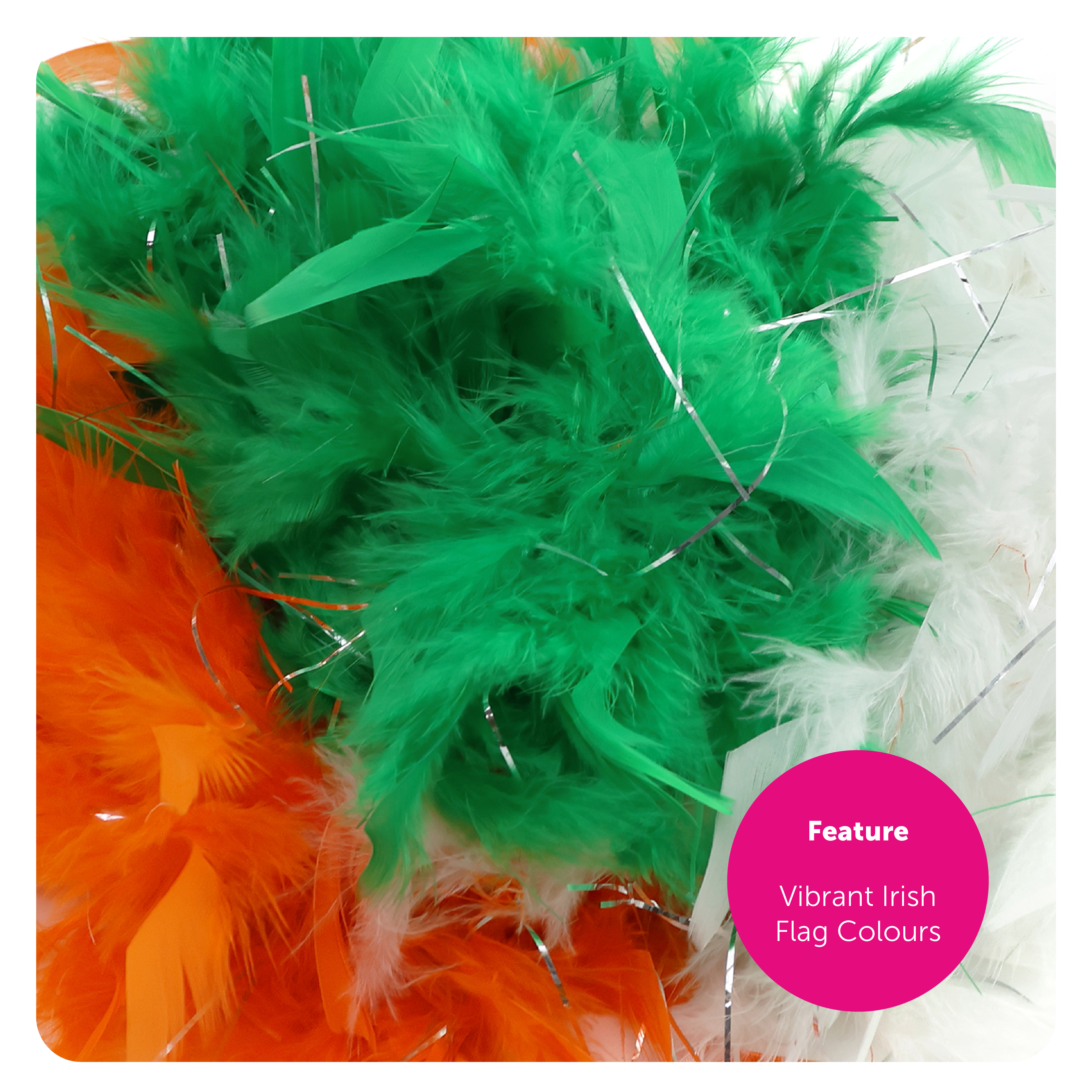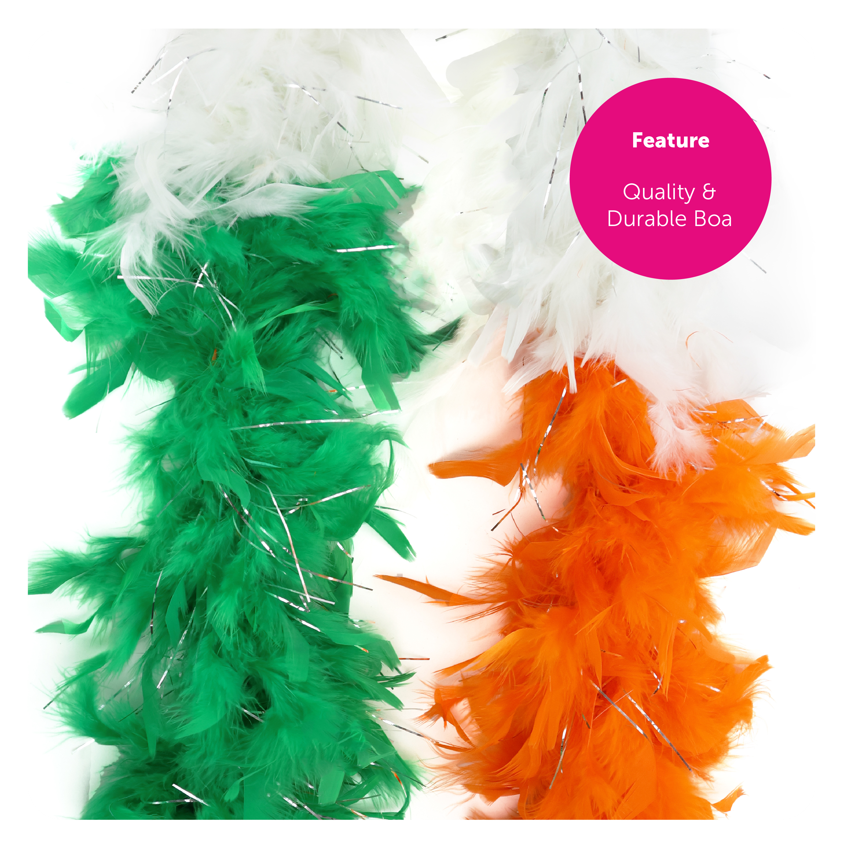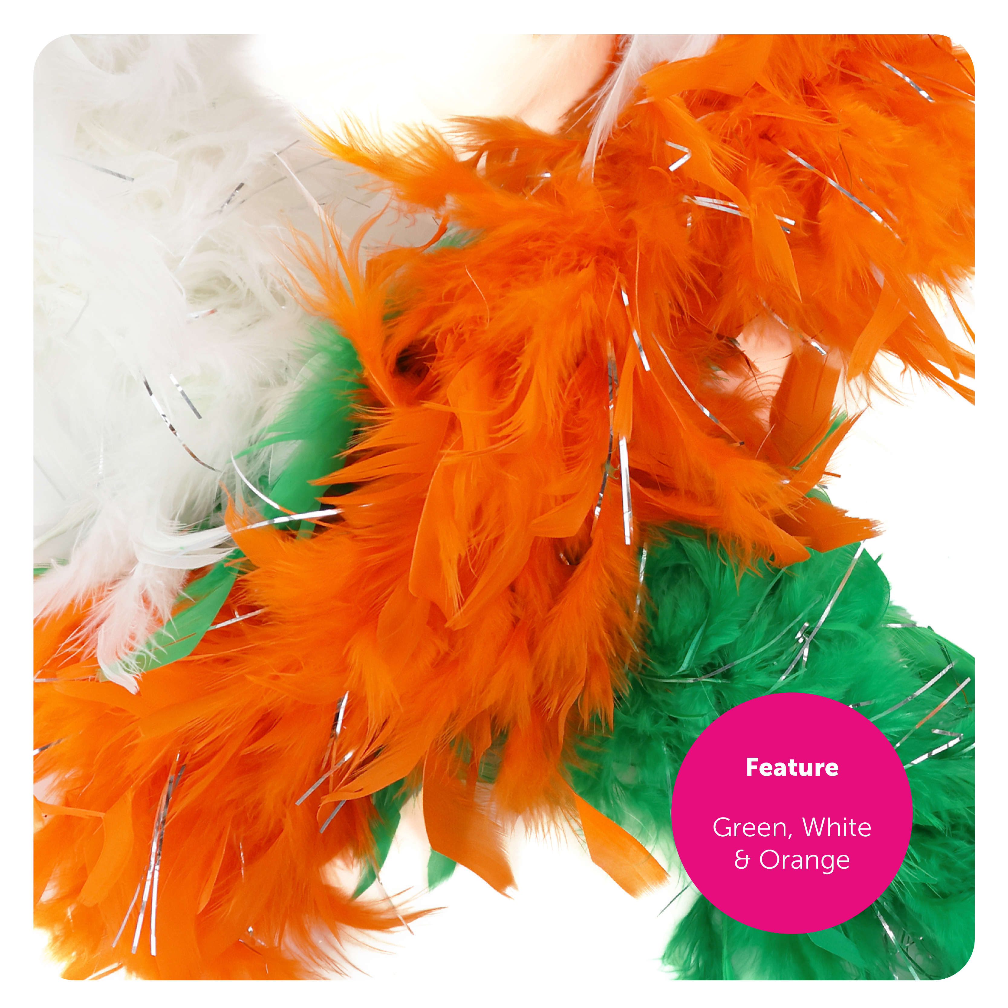 PERFECT FOR ANY IRISH EVENT: Whether you are celebrating at a St Patrick's Day event, or supporting Ireland in a Sports event, then thisGreen, White & Orange Feather Boa is the perfect addition to your look!
