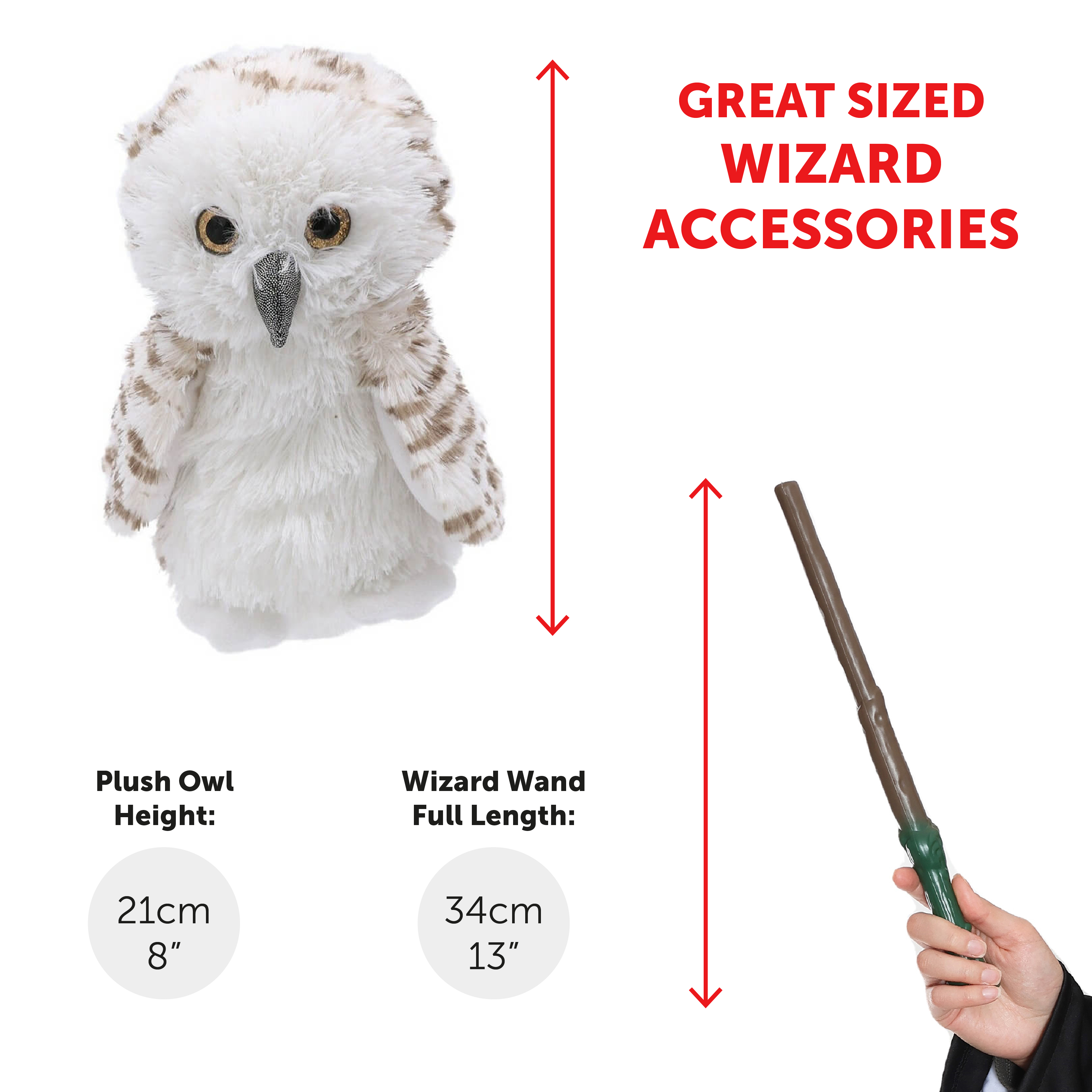 GREAT SIZED ACCESSORIES: Your Wizard Costume Set is equipped with a Wizard Wand and a Plush Owl - the Wand measures a length of 34cm (13"), and the Plush Owl is 21cm (8") tall