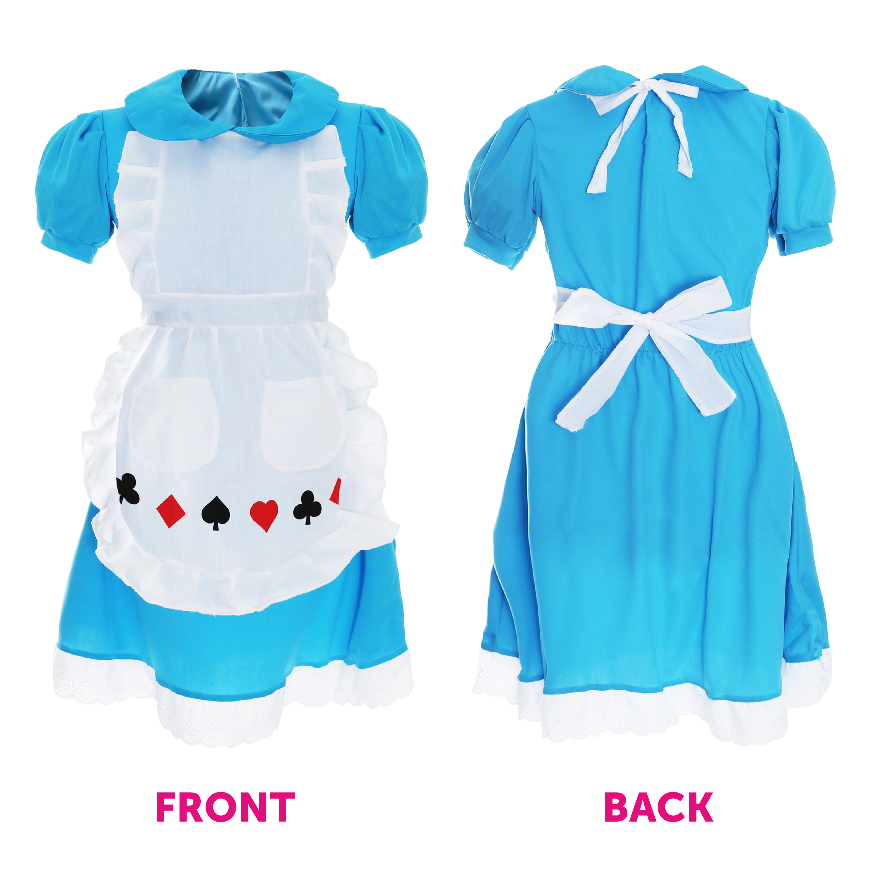 COSTUME INCLUDES: Our Wonderland Costume includes Blue Alice Dress with a White Apron with Front Pockets, Black Alice Headband and Black and White striped tights, you’ll be looking like the real deal with this costume set!