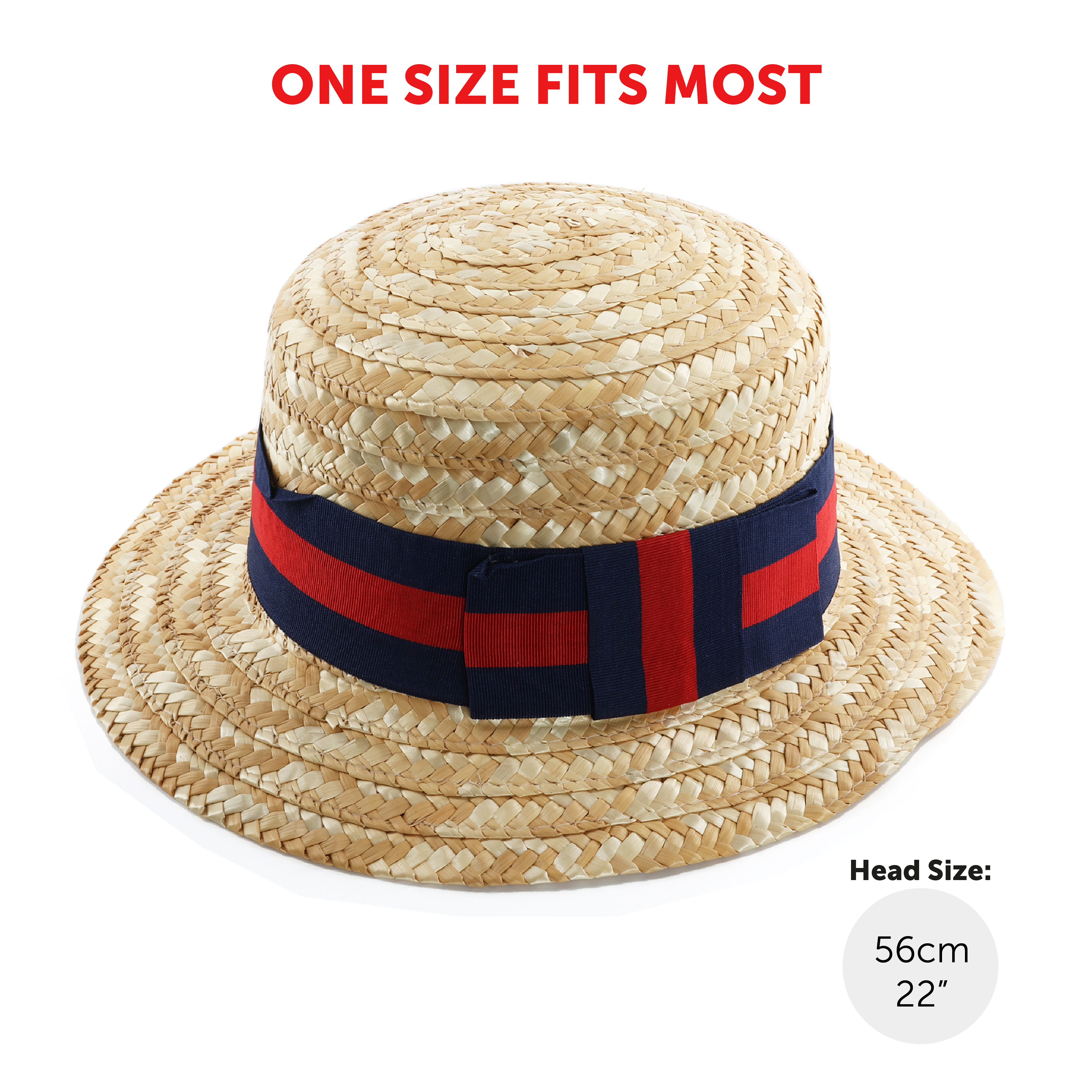 ONE SIZE FITS MOST: The Child's Straw Boater Hat is designed to fit most Children comfortably with a head size measuring up to 56cm (22"), a suitable size to wear all day and night at any event!