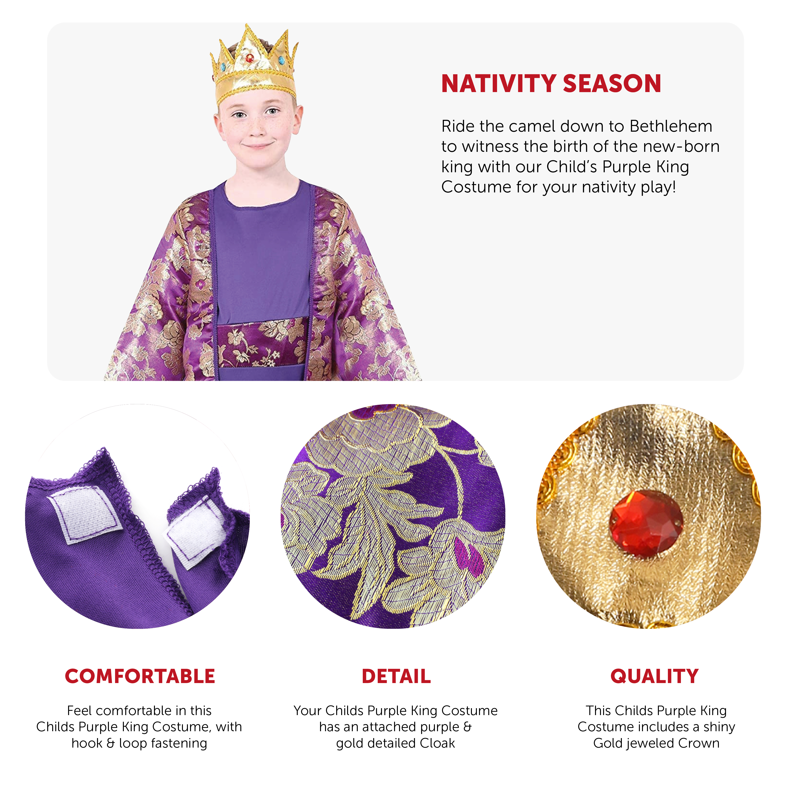 PERFECT FOR CHRISTMAS AND NATIVITY FANCY DRESS: Whether you have an upcoming Christmas party or are playing a part in the Nativity, then our Child’s Purple King Costume is the perfect choice for the occasion!