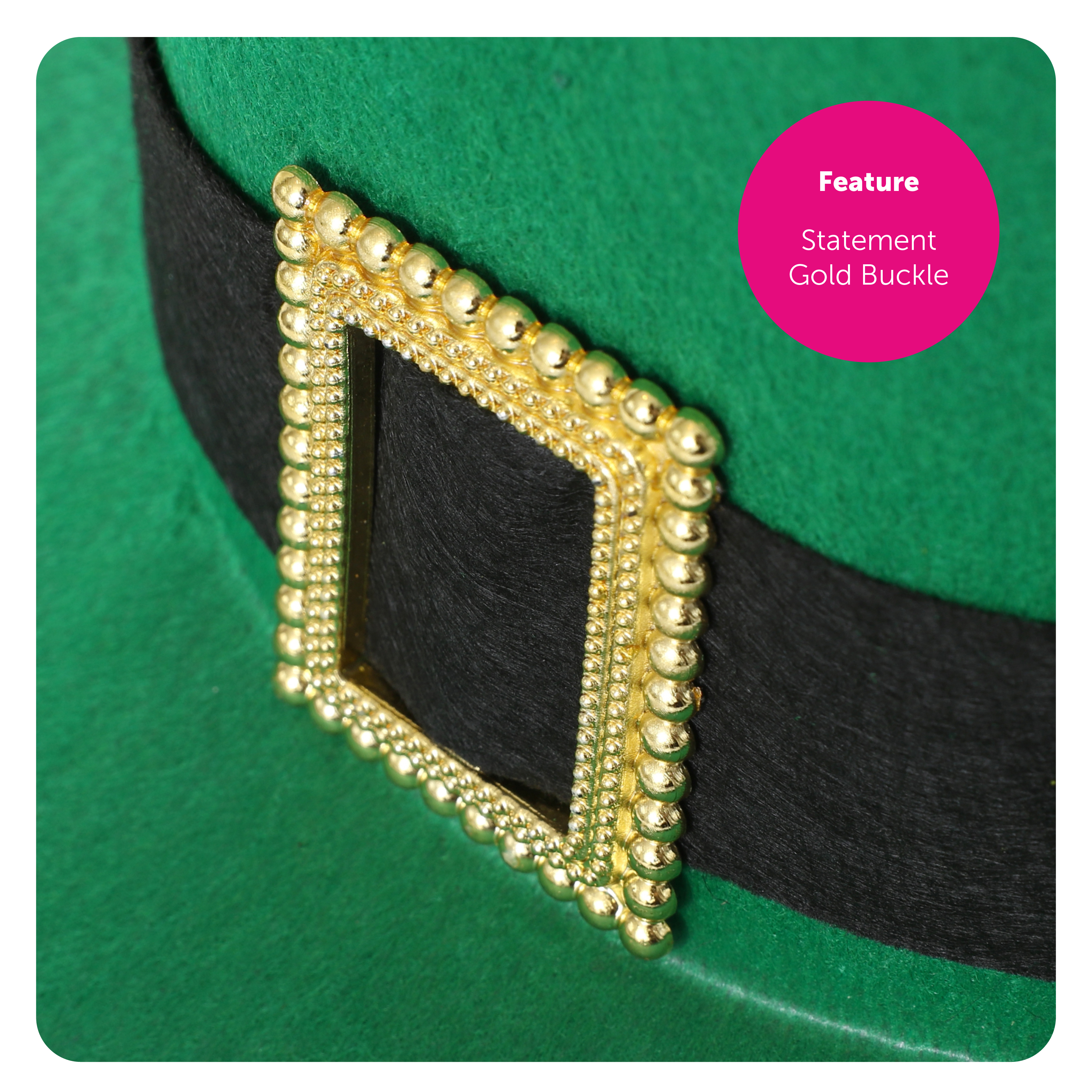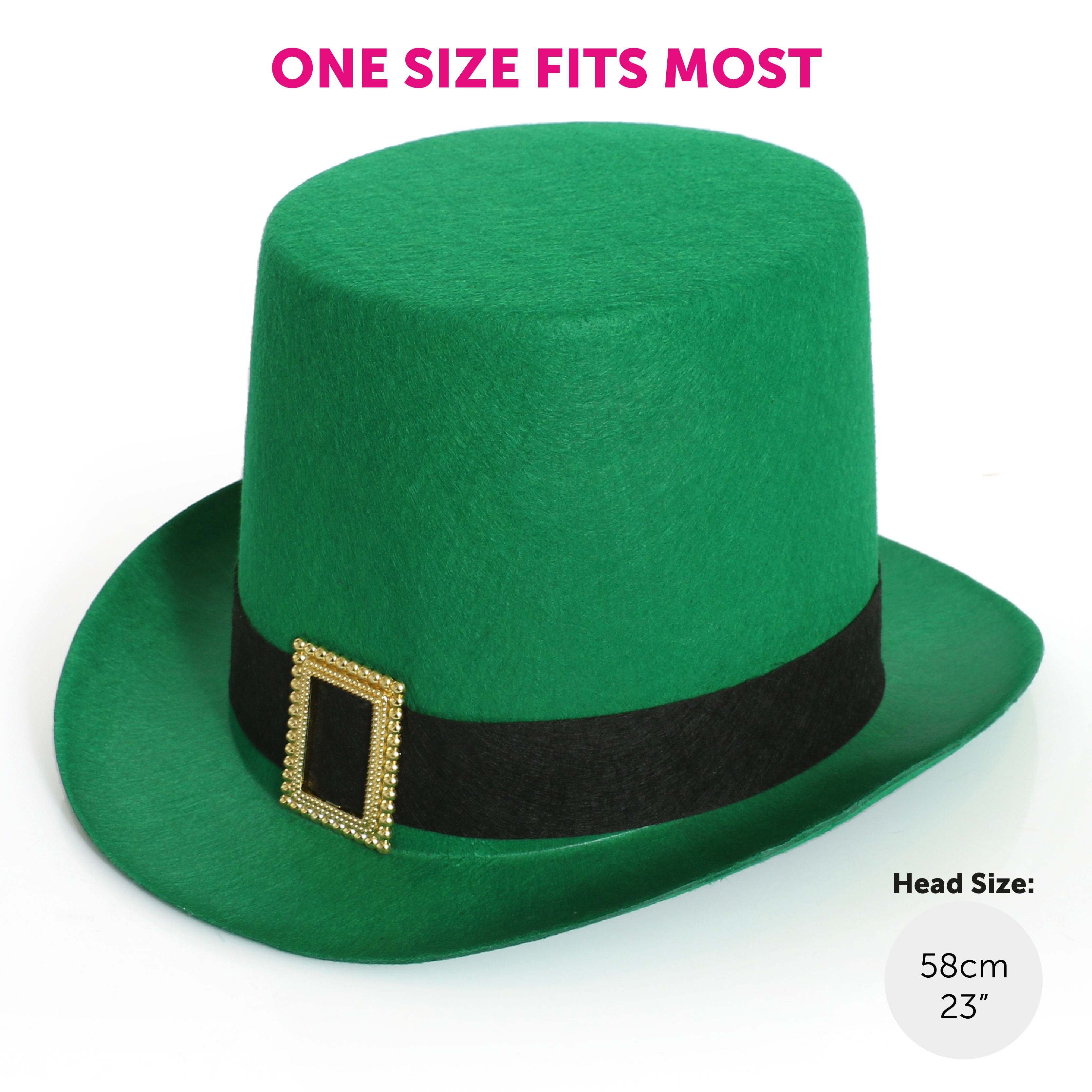 ONE SIZE FITS MOST: This Irish Buckle Top Hat is one size, with a head circumference of 58cm (23"), the perfect accessory to comfortably fit most Adults suitably to complete any Irish themed costume!