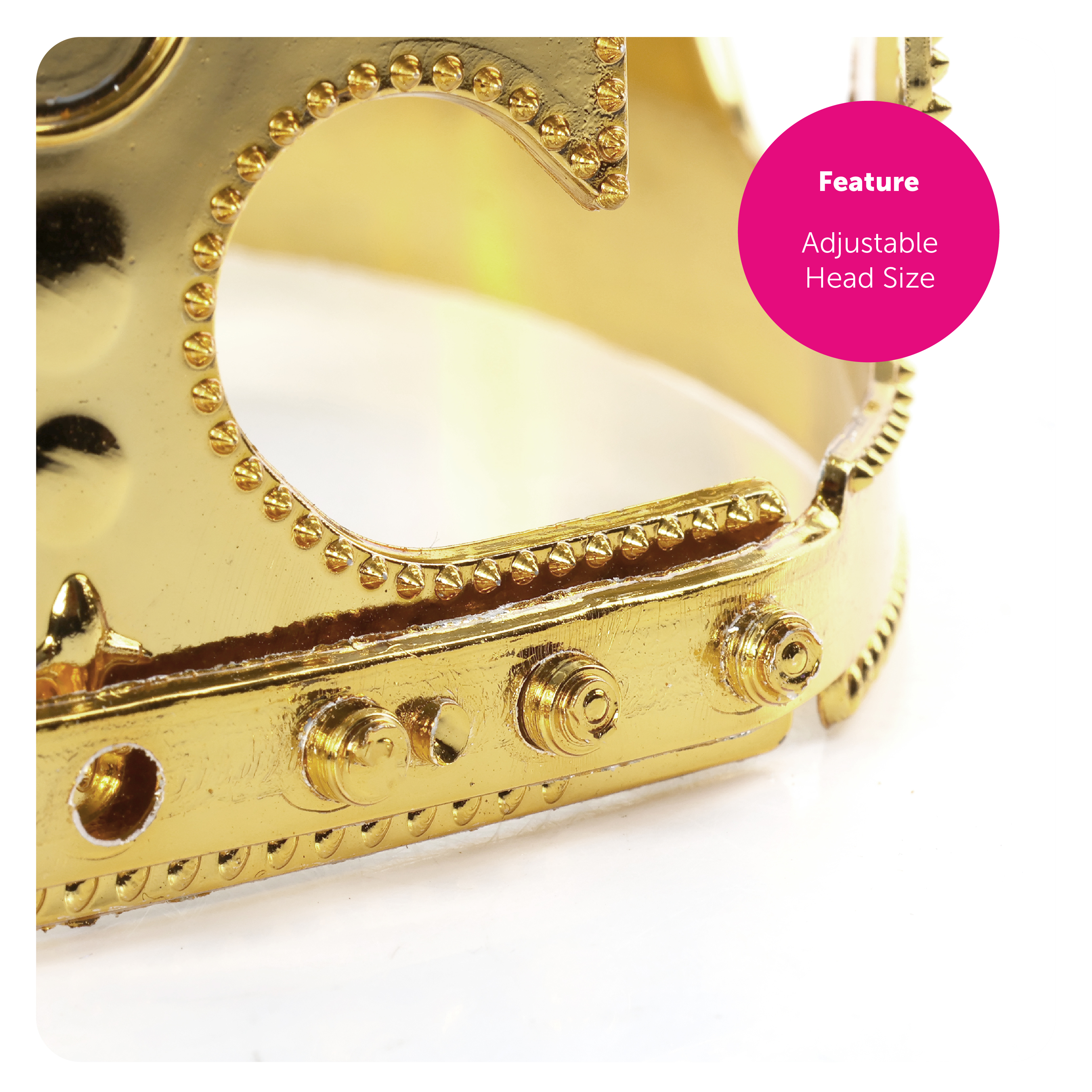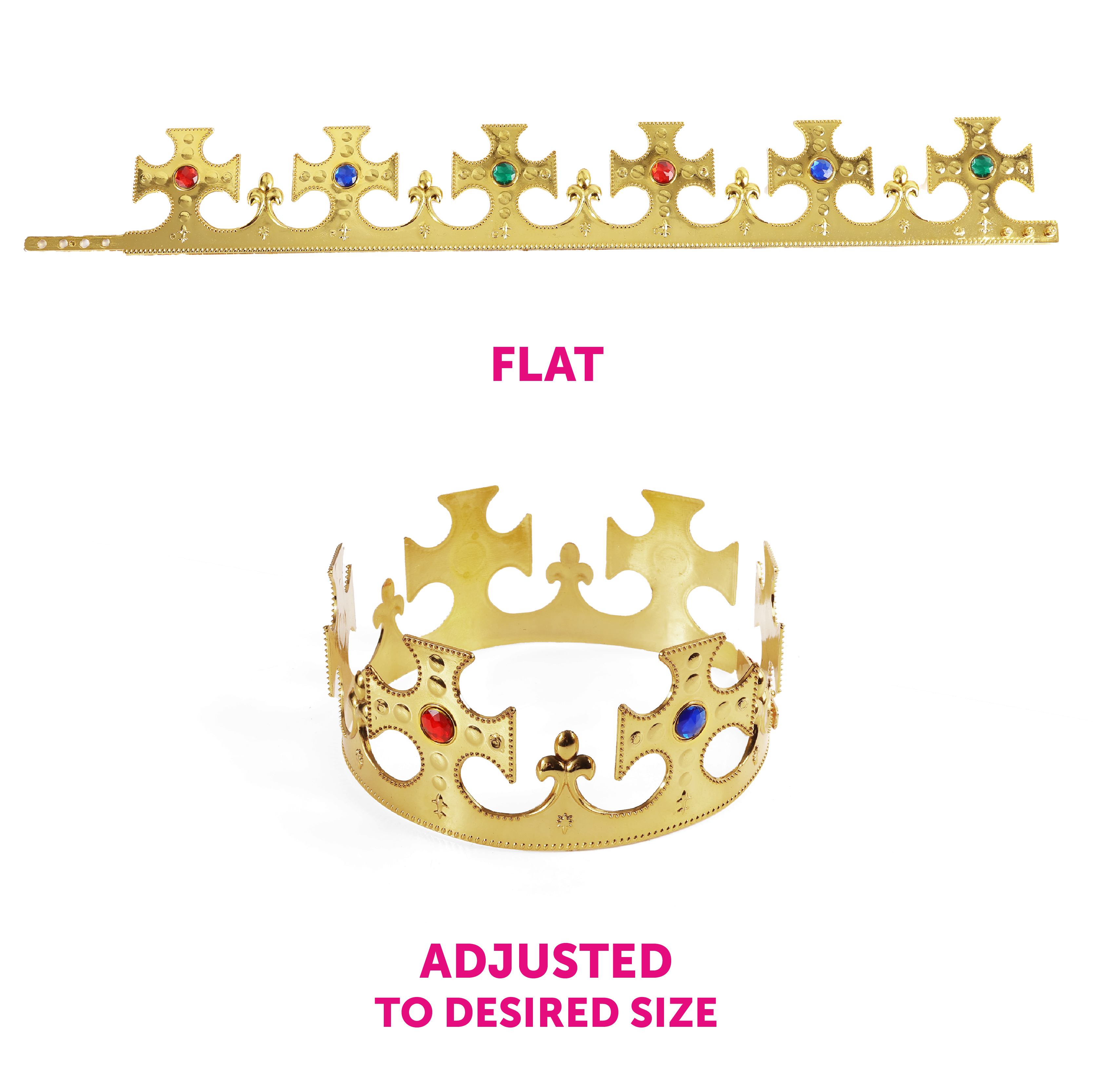 ONE SIZE FITS ALL: The King's Crown is an adjustable accessory and can fit a head size of 54cm (21") up to 58cm (23") - the perfect accessory for anyone to wear at the next Royal event!