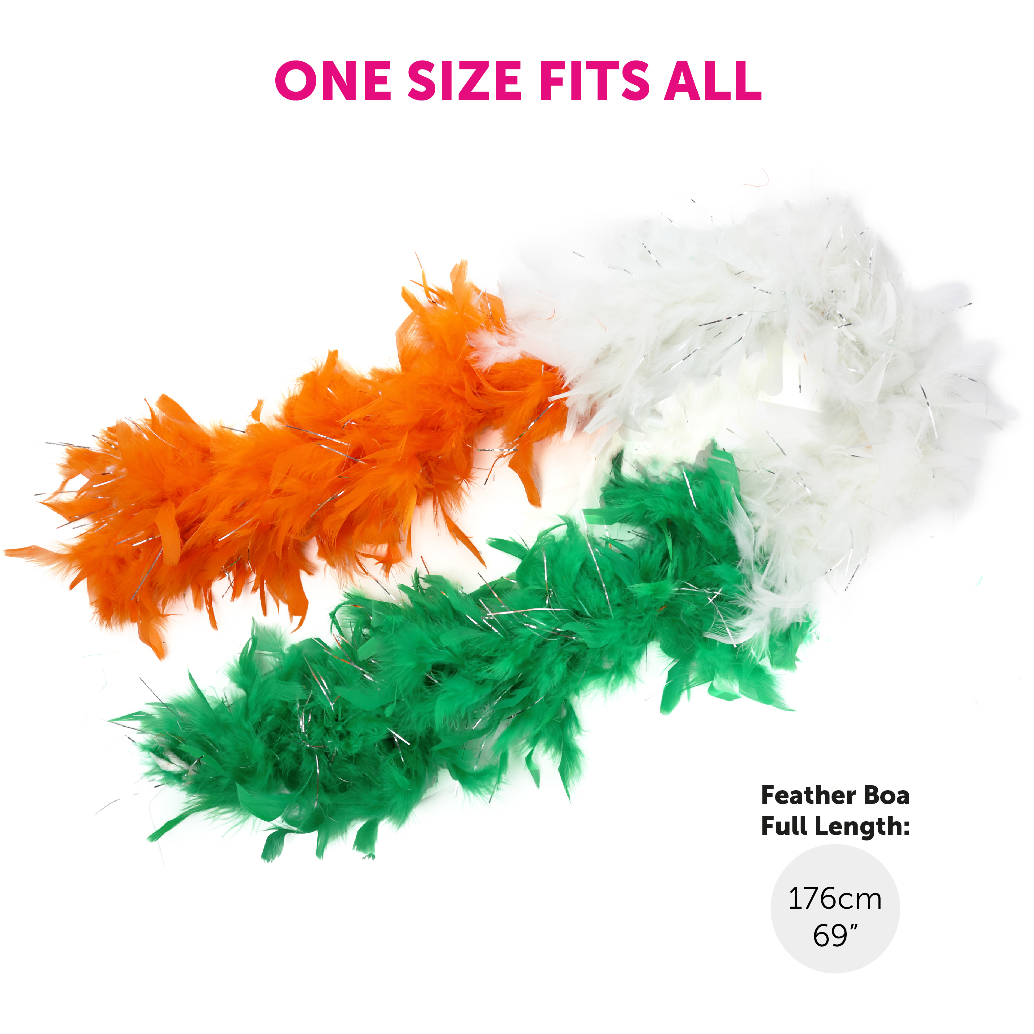 ONE SIZE FITS ALL: At one size, this Feather Boa is suitable for anyone to wear, measuring a full length of 176cm (69"), the perfect size for you to stand out at any fancy dress occasion!