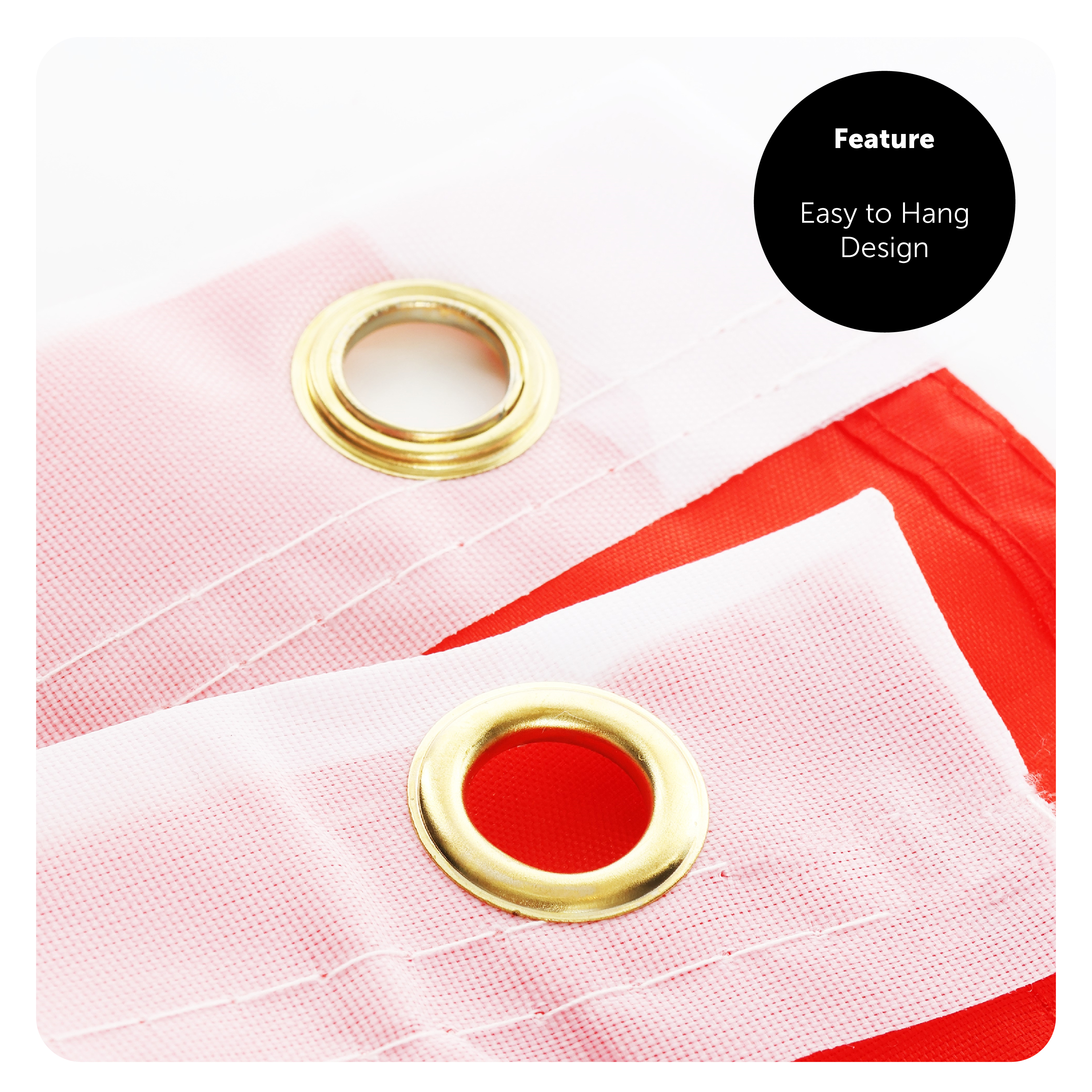 VERSATILE DESIGN: Our reusable and lightweight Denmark Flags are made from a strong fabric with 2 eyelets that are perfect for hanging from a Flagpole, across windows, and any area!