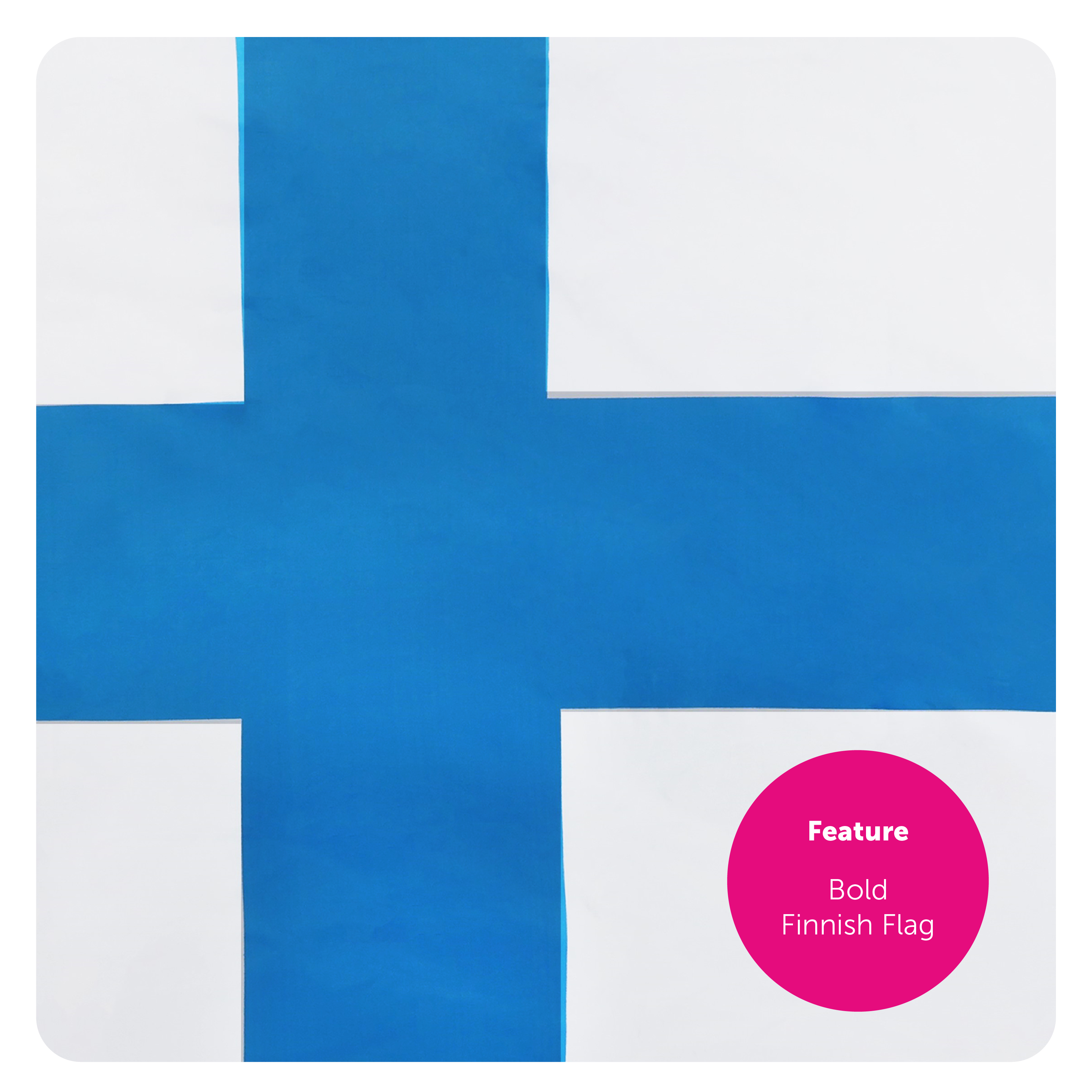FLAG DETAILS: This Finnish Flag has a vibrant White background, with a Blue Cross slightly to the left, the Flag measures 5ft (152cm/60") in Width and 3ft (91cm/36") in Height, you'll have the perfect flag accessory to fly high for any event!