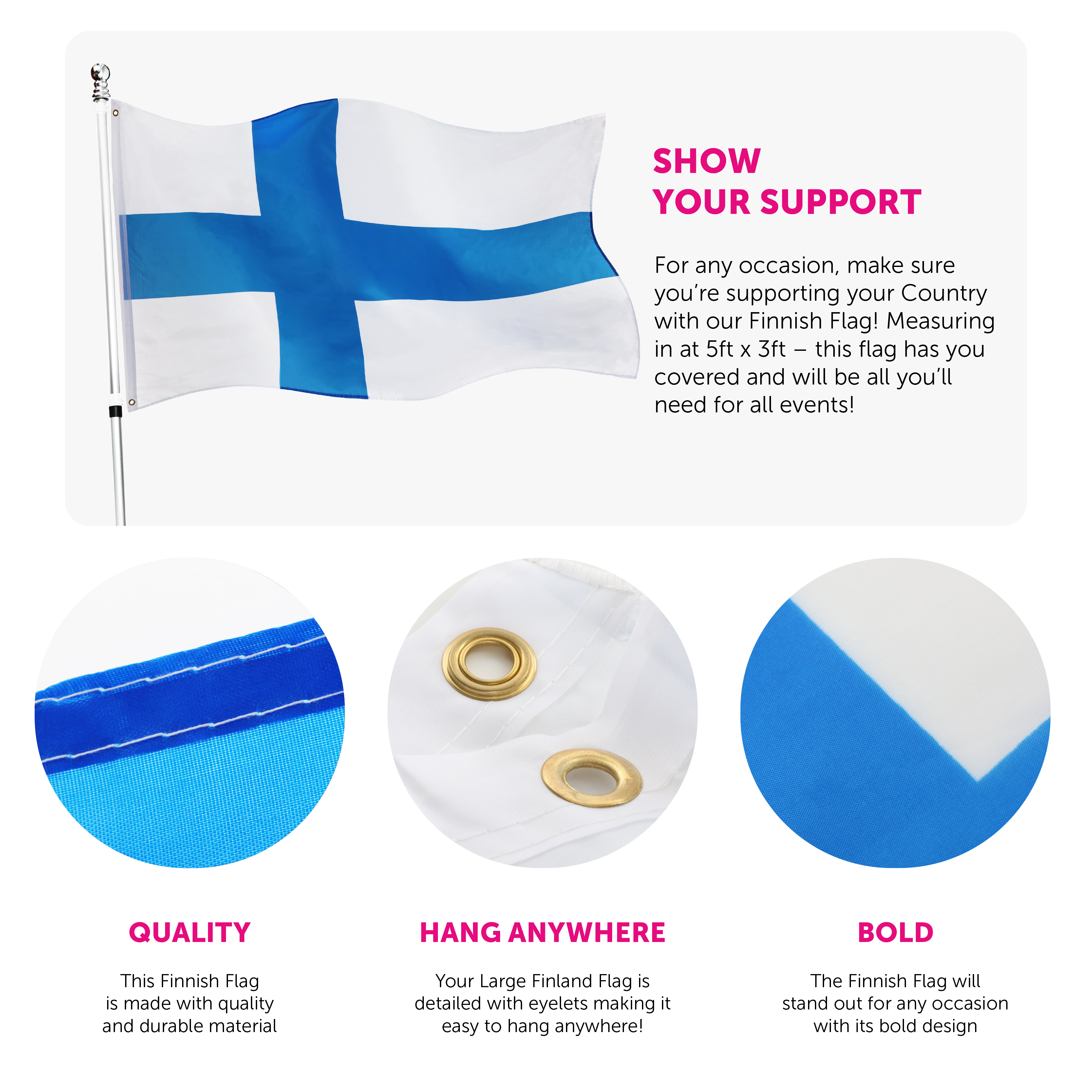 PERFECT FOR ANY FINNISH EVENT: For any event or occasion, make sure you're picking up a 5ft x 3ft Finland Flag for a day of support and celebration alongside family and friends!