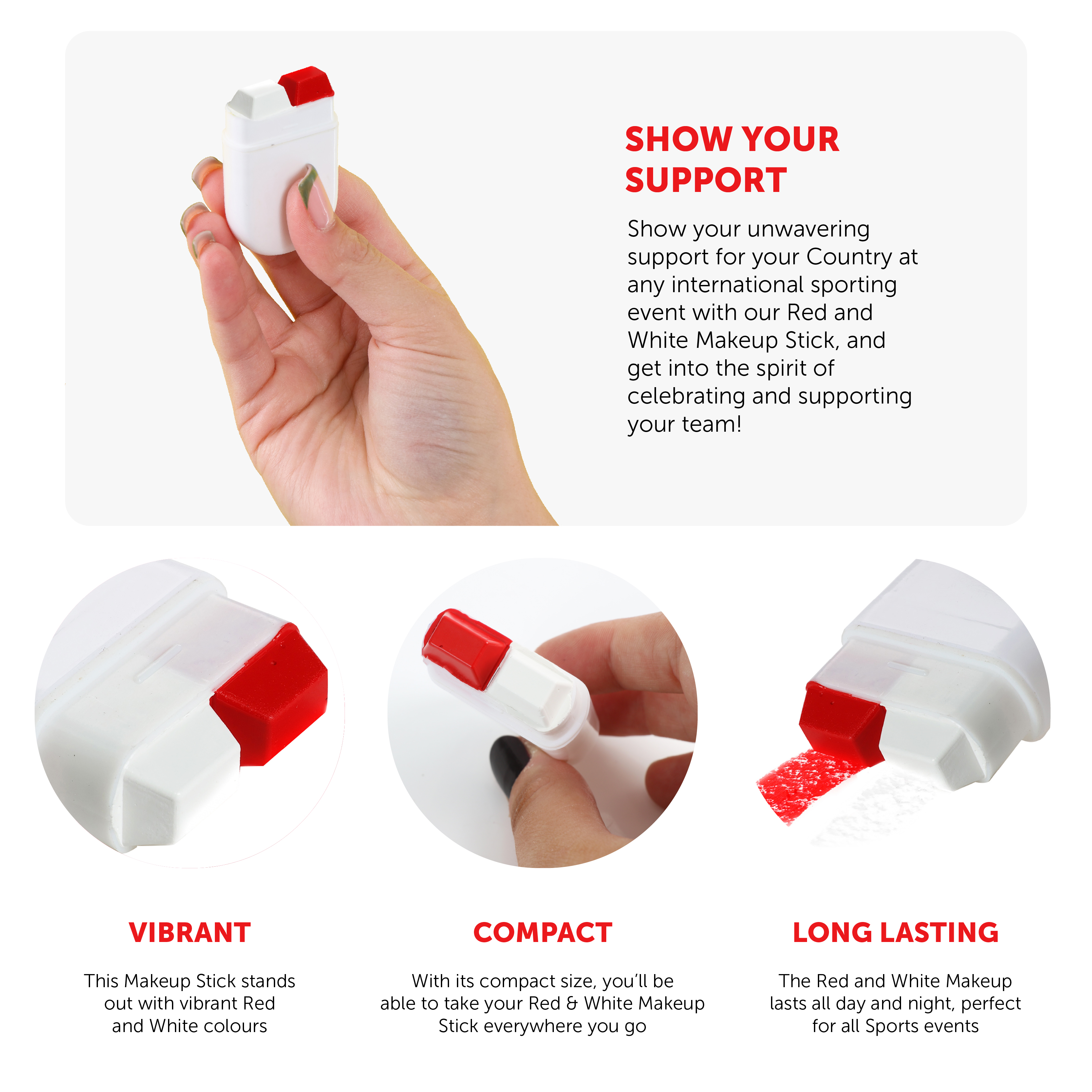 RED & WHITE MAKEUP STICK: Show your unwavering support for your Country at any international sporting event with our Red and White Makeup Stick, and get into the spirit of celebrating and supporting your Countries team!