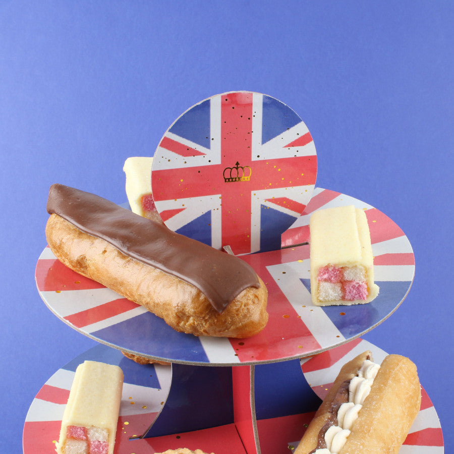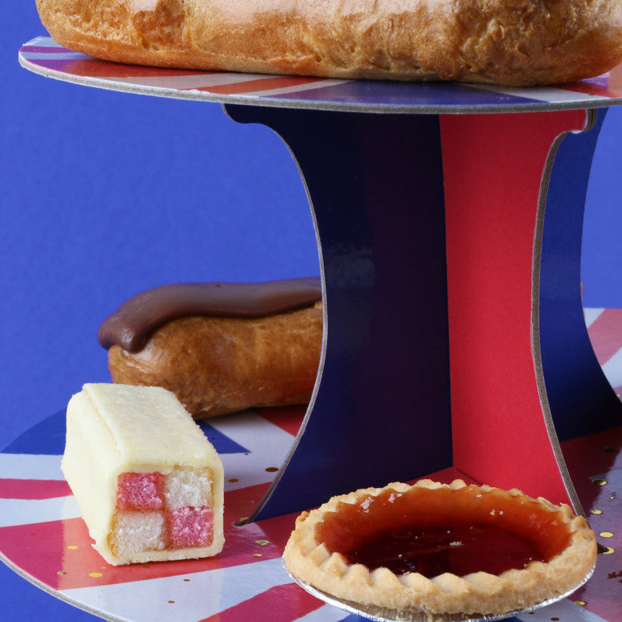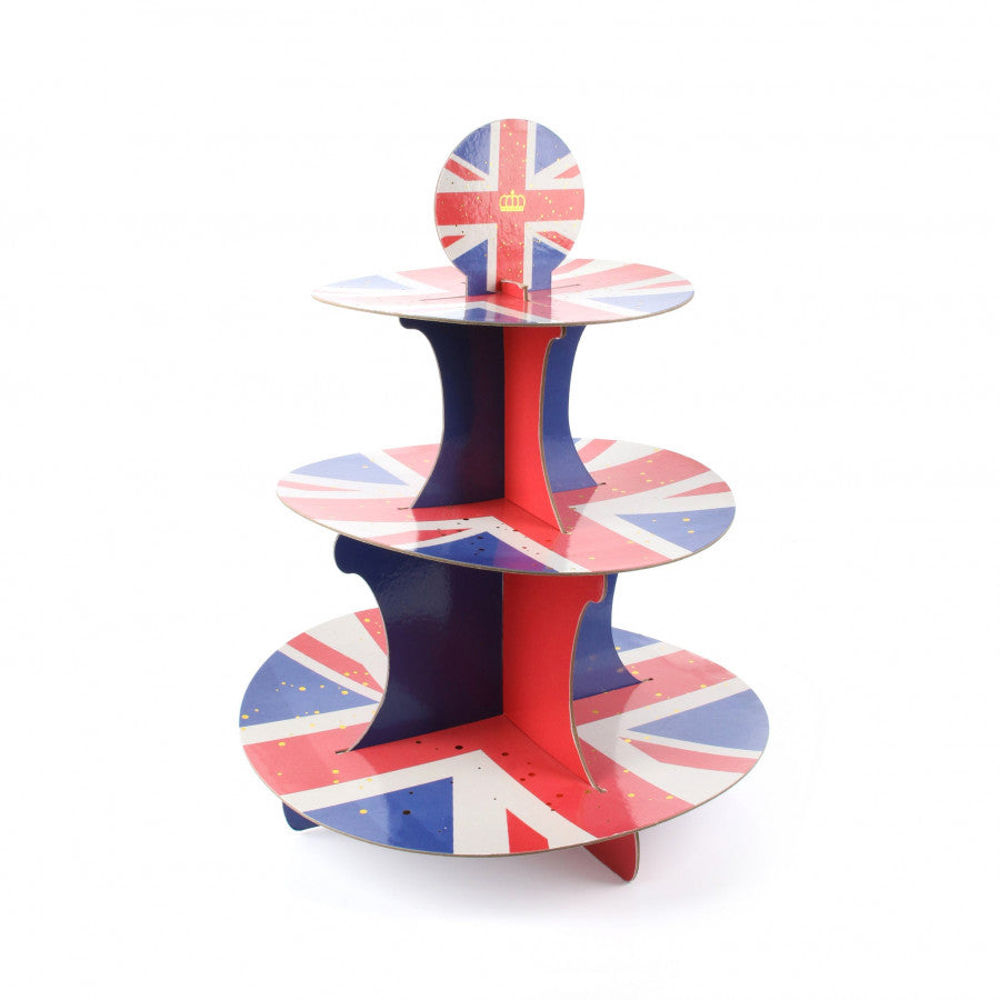 Union Jack 3 Tier Cake Stand with Gold Foil Crown Design