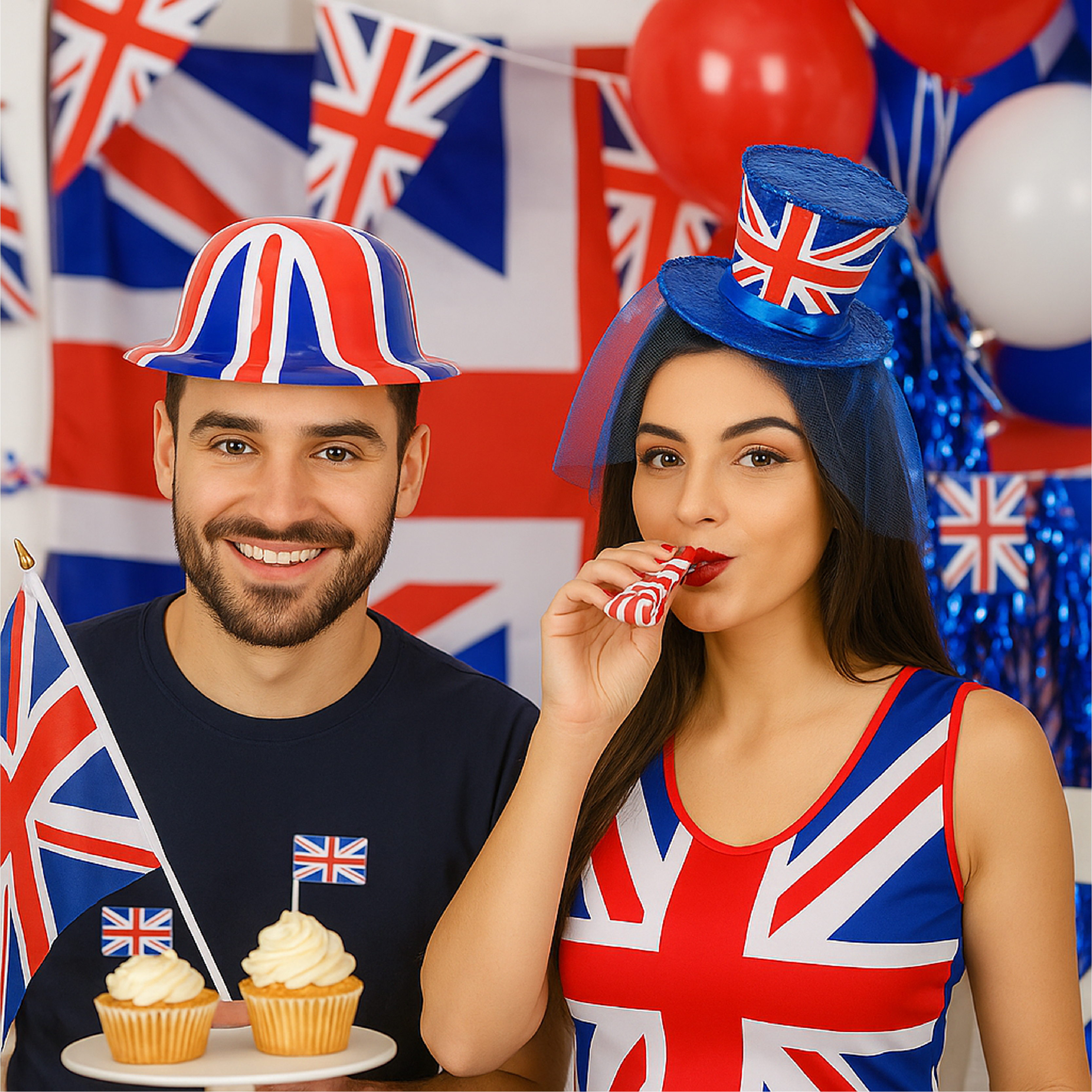 UNION JACK BOWLER HAT & FASCINATOR HAT: Make a grand appearance for VE Day, Sporting events and any other British occasions there may be with our brilliant Union Jack Bowler Hat & Fascinator Hat Set for the most memorable events and occasions!