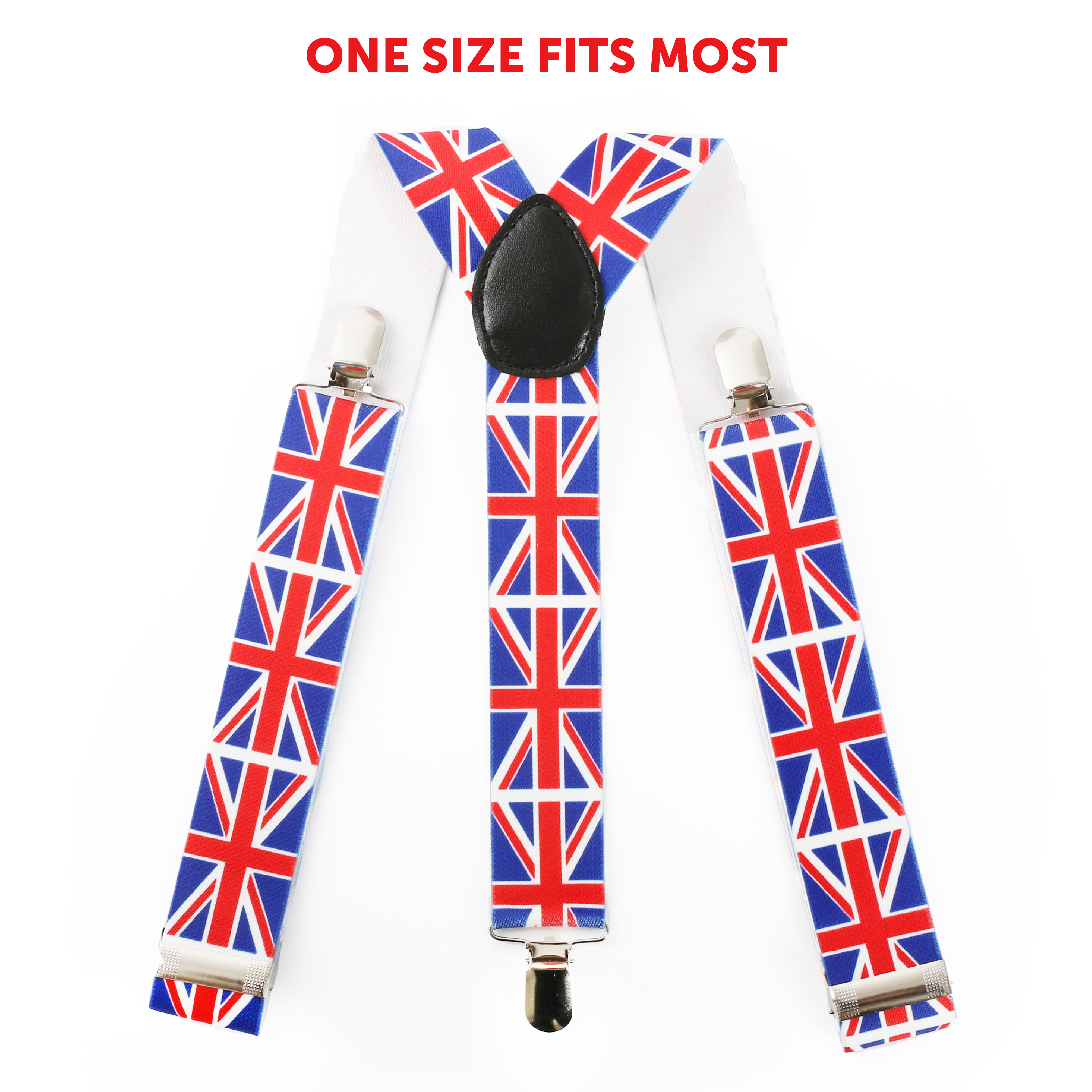 ONE SIZE FITS MOST: Being a very comfortable size for most, the Union Jack Bowler Hats are a head size measuring in at 58cm (23"), and the matching Suspenders are adjustable for a comfortable fit, the perfect accessory for all things British!
