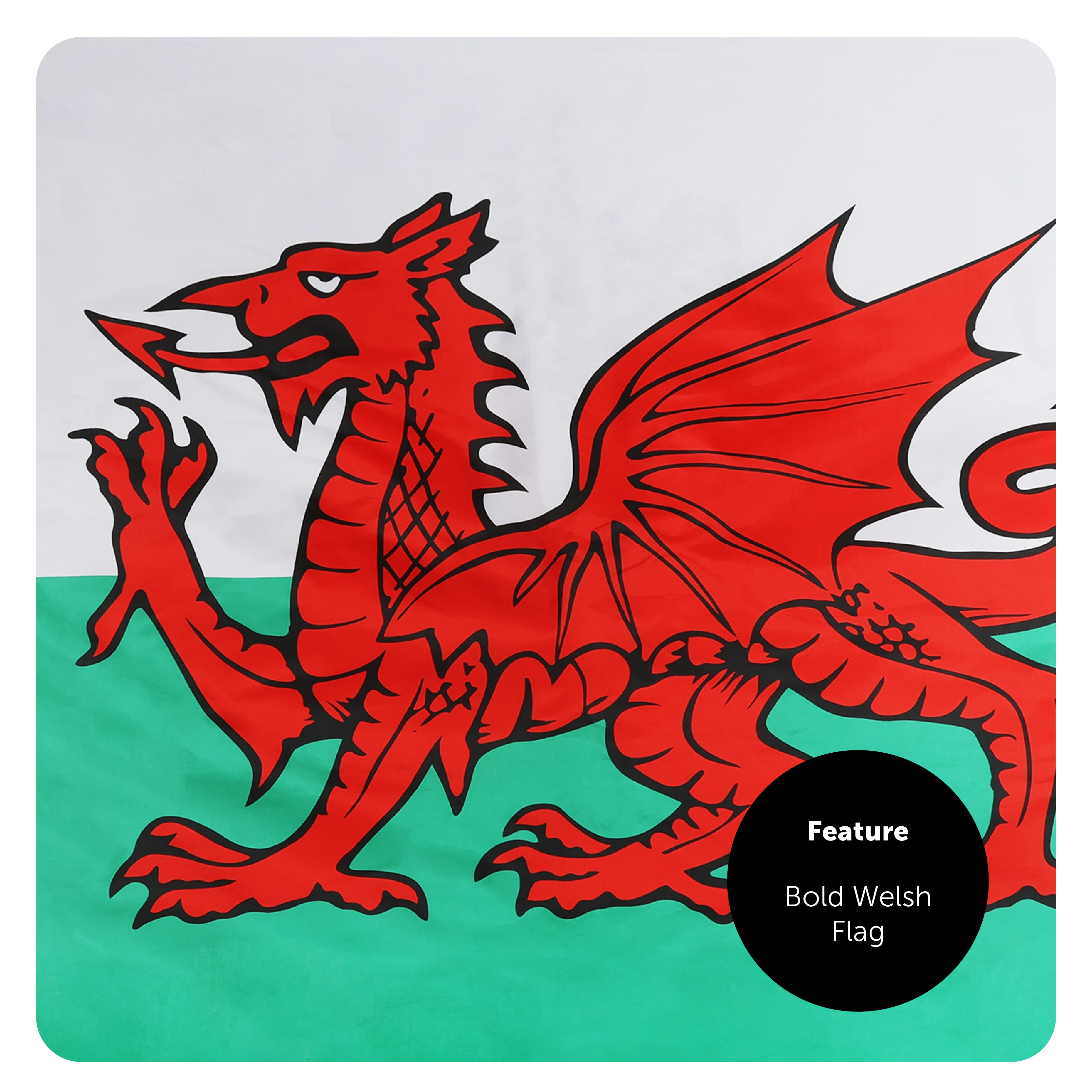 FLAG DETAILS: This Welsh Flag has a vibrant design with a White and Green background colour, and detailed with a large Red Dragon in the centre the Flag measures 5ft (152cm/60") in Width and 3ft (91cm/36") in Height, you'll have the perfect flag accessory to fly high for any event!
