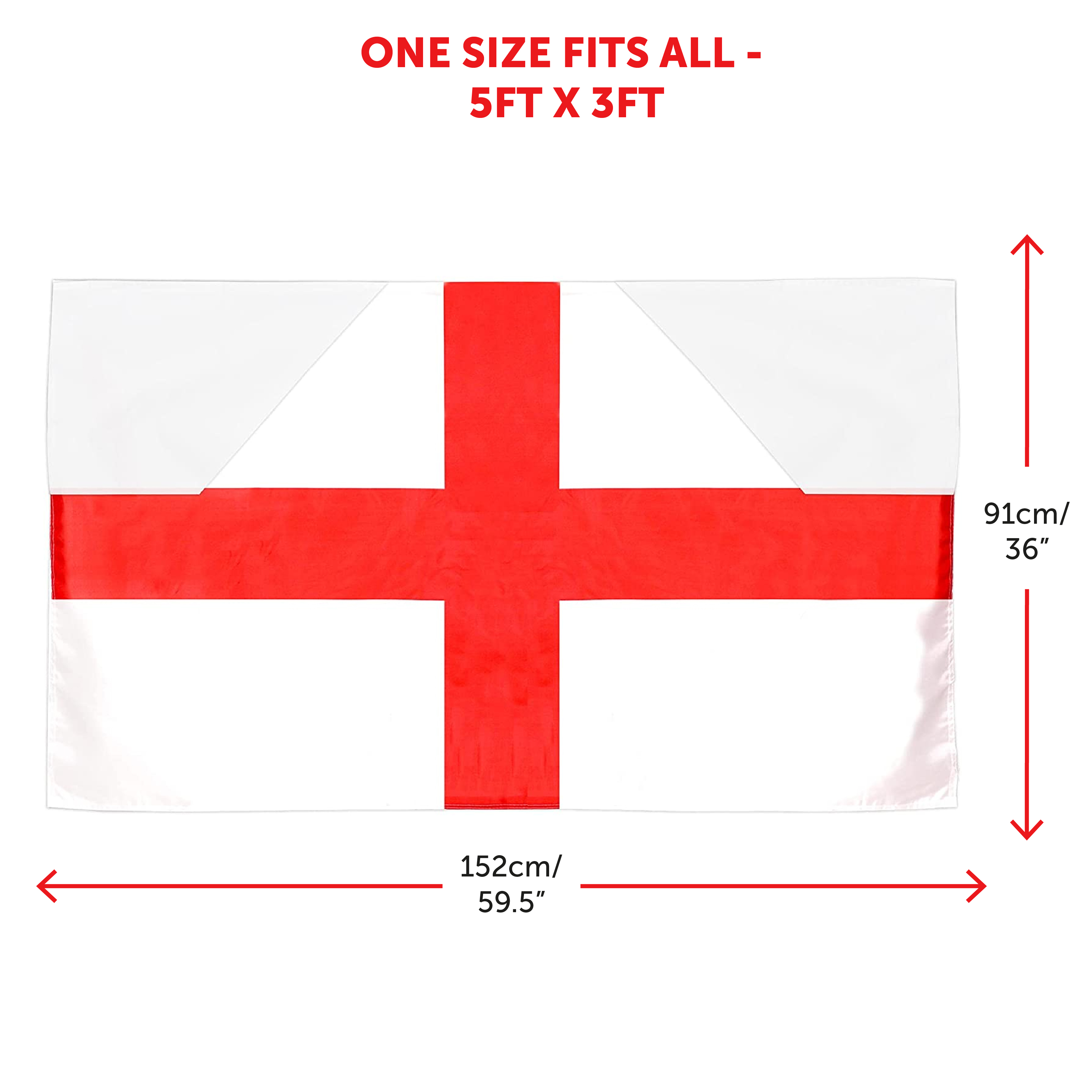 - 5FT X 3FT ENGLAND FLAG: Support your country and their teams for any and every occasion you attend with our Wearable 5FT X 3FT England Flag, perfect for hanging up for a decoration around your house, or for taking with you to any England Event!