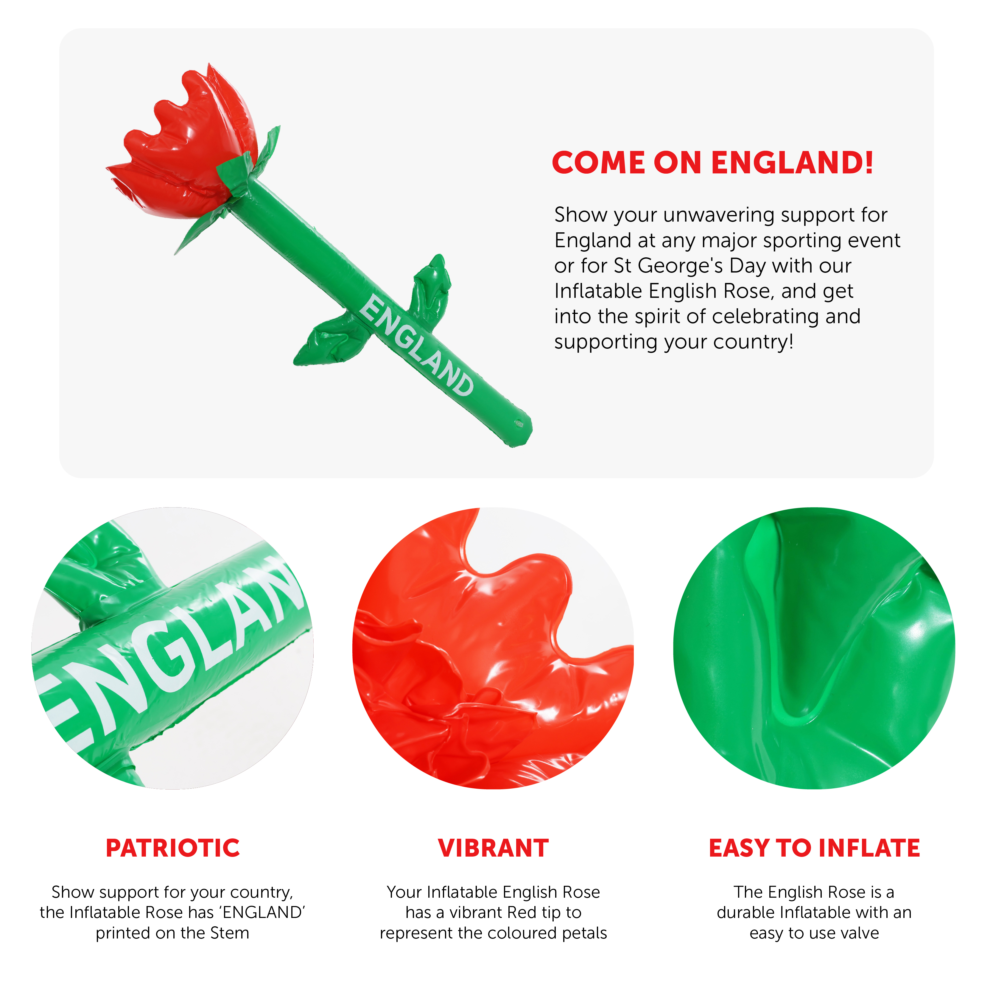 GREAT SIZE INFLATABLE: The English Rose Inflatable is a great size, measuring a full length of 82cm (32"), it is the perfect sized Inflatable prop to show support for your Country! PERFECT FOR ANY ENGLISH CELEBRATIONS: Whether it be for Football, St George's Day, Rugby, or any other English event you need to attend, then make sure you’re not missing out on picking up our Inflatable English Rose!
