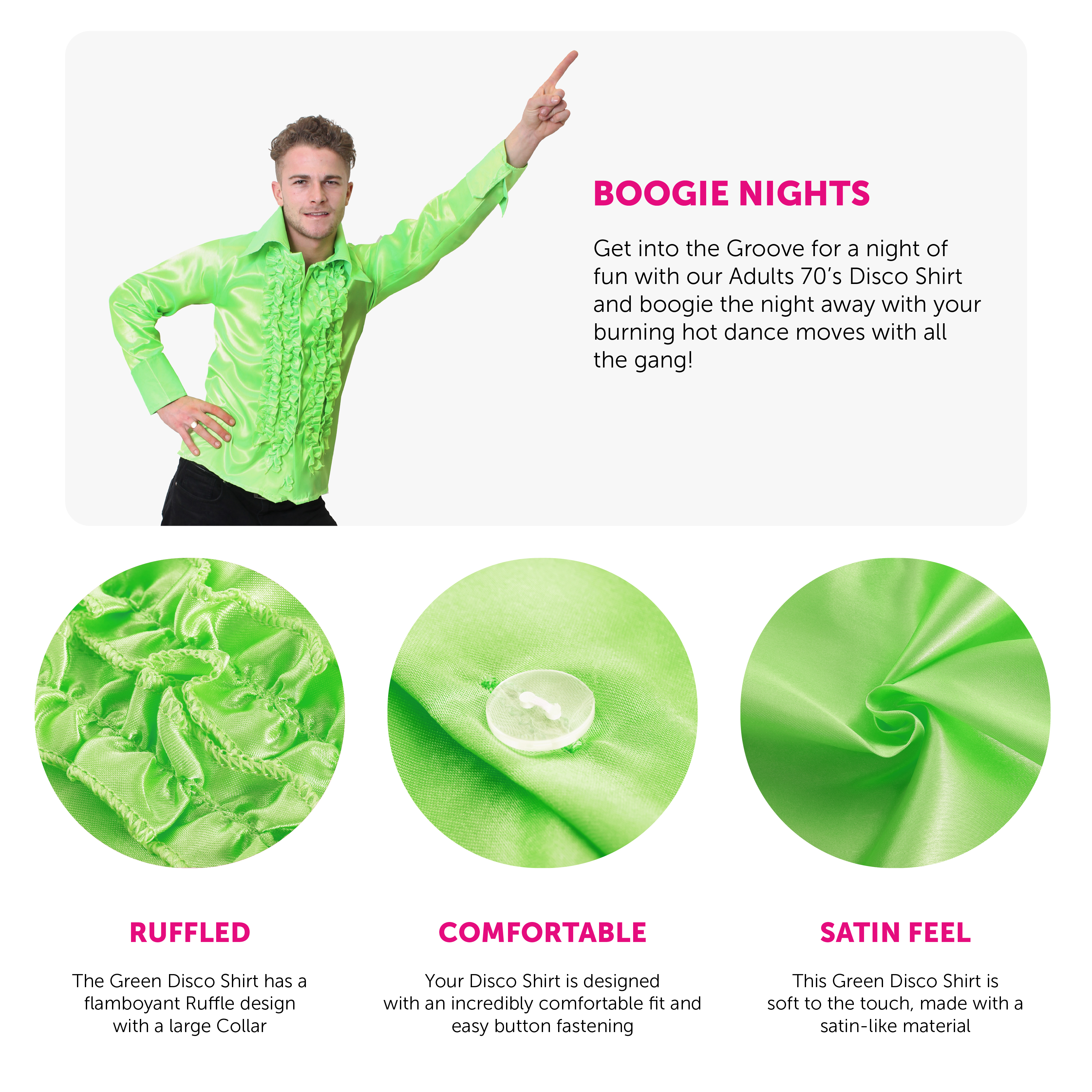 ADULTS GREEN DISCO SHIRT: Get into the Groove for a night of fun with our Adults 70's Disco Shirt and boogie the night away with your burning hot dance moves with all the gang!