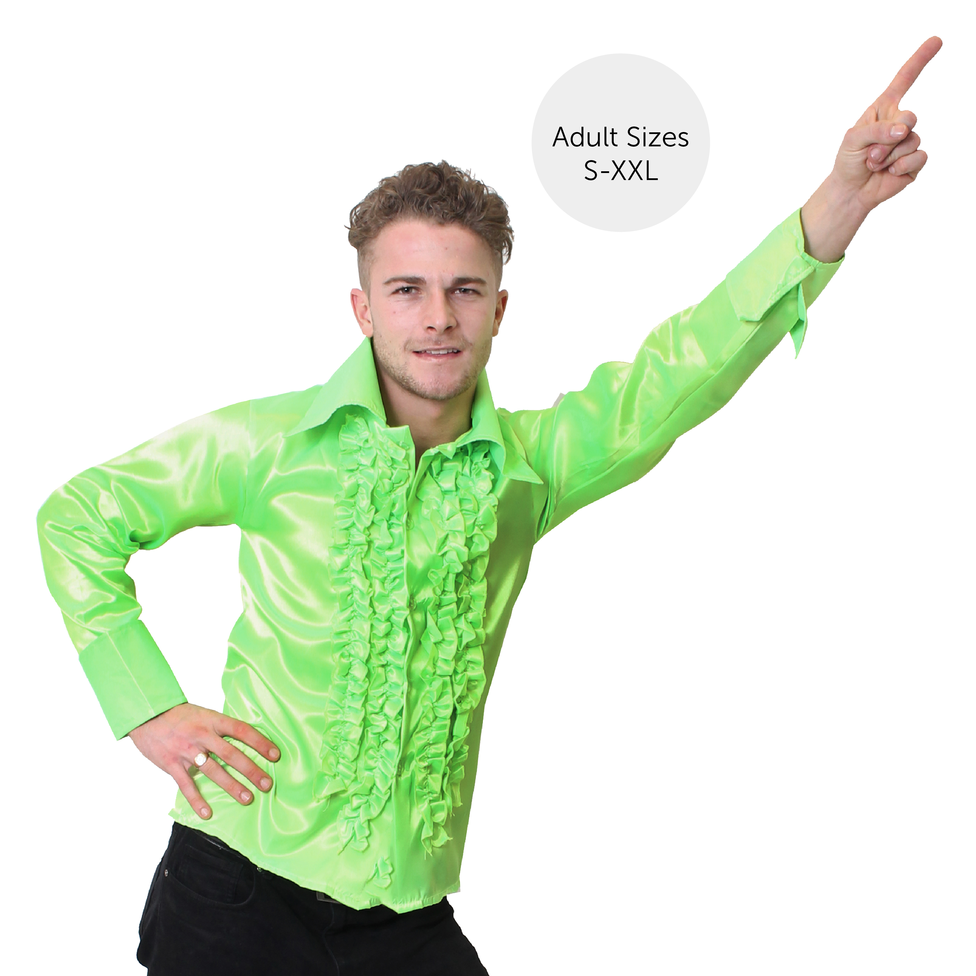 AVAILABLE IN MULTIPLE SIZES: Your Adults Green Disco Shirts are available in multiple sizes from Small – XX-Large: Small - Chest 42" (106cm), Length 26" (66cm) | Medium - Chest 45.5" (116cm), Length 27" (68cm) | Large - Chest 46.5" (118cm), Length 30" (76cm) | X-Large - Chest 47" (120cm), Length 31" (78cm) | XX-Large - Chest 48" (122cm), Length 31.5" (80cm)