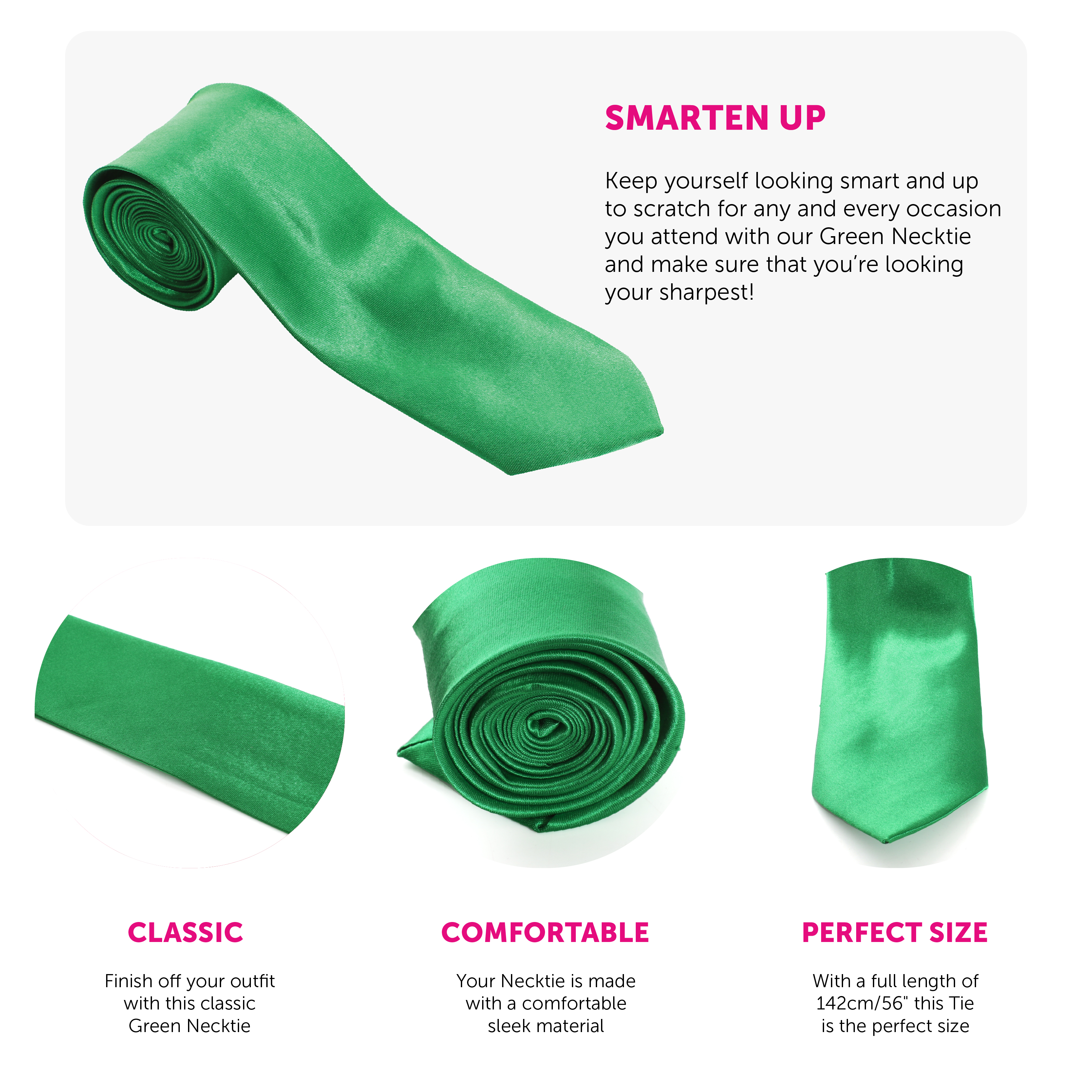 PERFECT FOR SMART OCCASIONS OR FANCY DRESS ACCESSORIES: Whether you’re looking for a clean, sharp, and smart Tie to polish your attire up, or a finishing touch accessory for your St Patrick's Day fancy dress Costume, this Green Necktie is what you need!