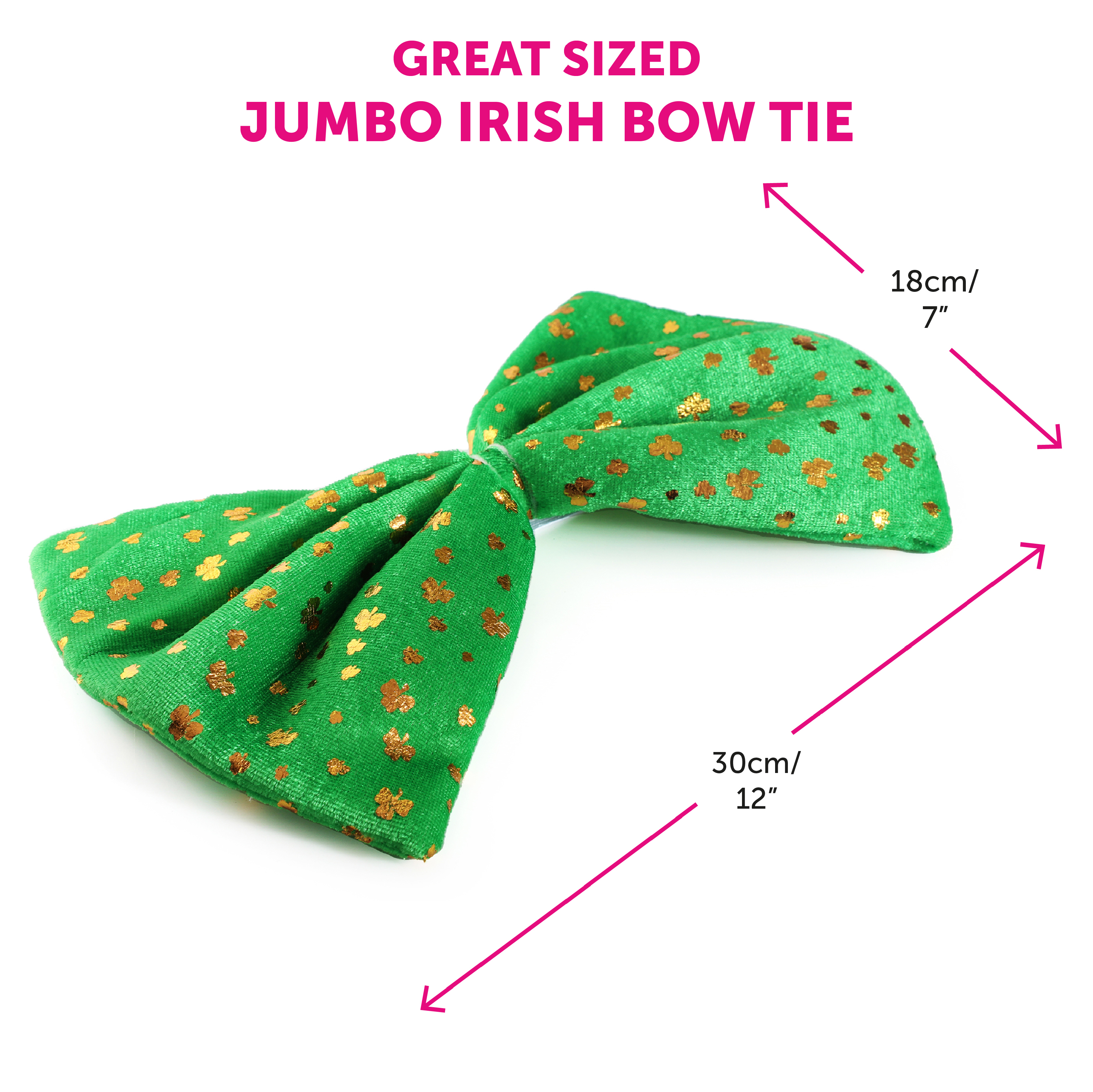 GREAT SIZED ACCESSORIES: Your Adults Green Cape is only available in one size, measuring 40" (101.5cm) in length, and the Jumbo Shamrock Bow Tie measures 30cm x 18cm (12" x 7"), you'll be sure to stand out at any Irish event!