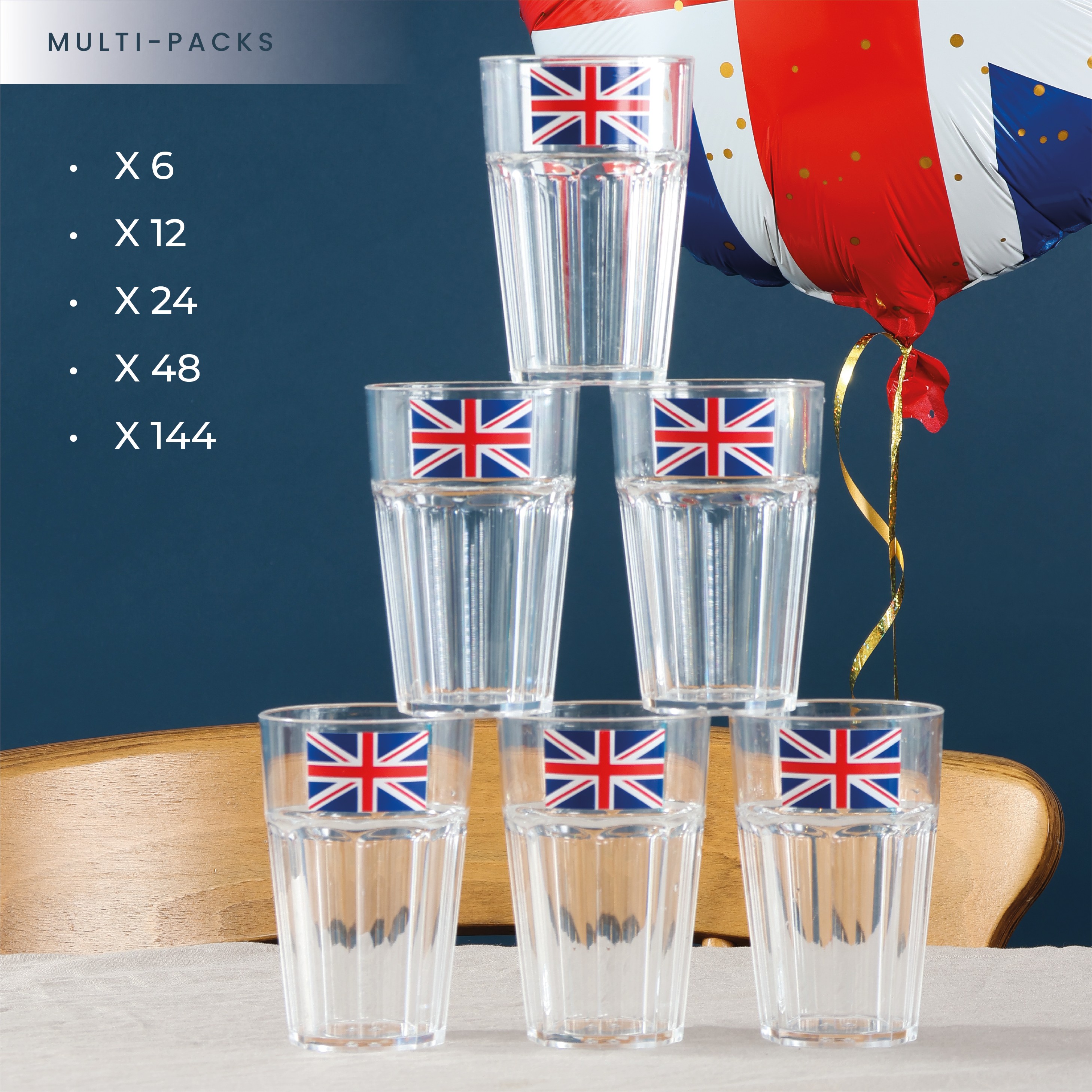 AVAILABLE IN MULTIPLE PACK SIZES: These Union Jack Plastic Tumblers are available to buy in Packs of 12, or if you happen to be catering for more, there are also Packs of 24 and Packs of 144, for you to use among groups of family and friends!