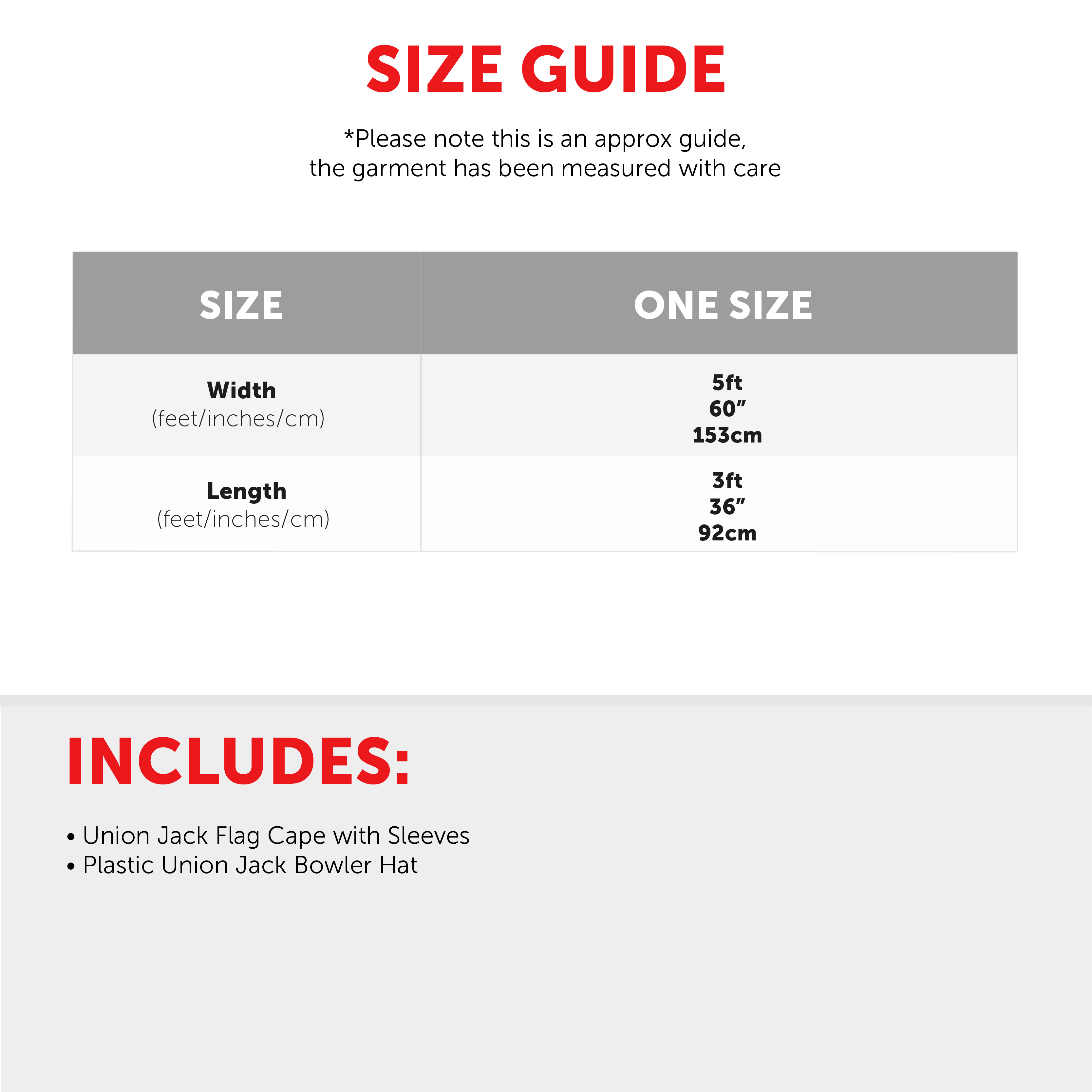 LARGE UNION JACK FLAG MEASUREMENTS: With your Large Wearable Union Jack Flags measuring 5ft (60") in Width and 3ft (36") in Height, you'll have the perfect flag accessory to fly high for the King's Coronation and British Events!