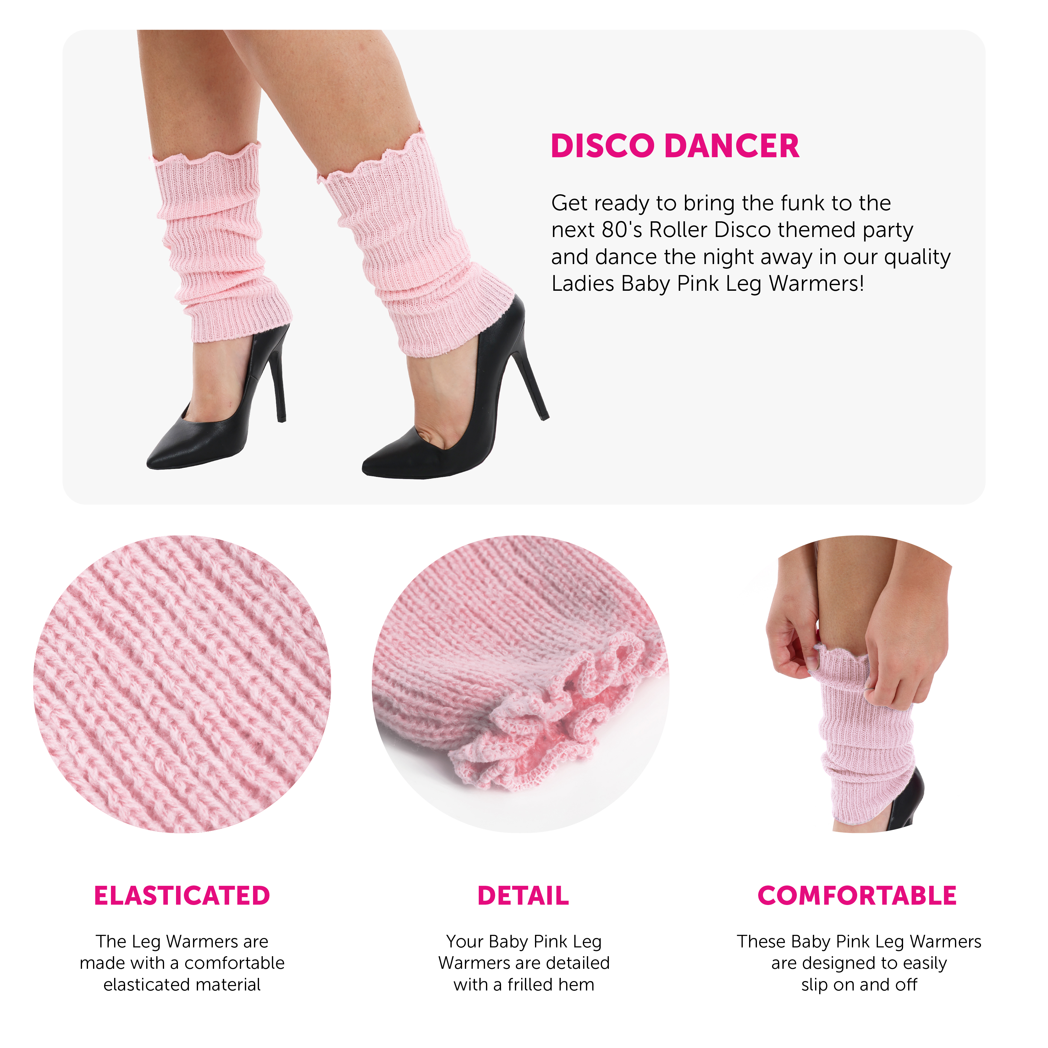 PERFECT FOR 80'S THEMED FANCY DRESS: Whether you're attending an 80's themed Fancy Dress Party, a Roller Disco, or a festival be sure to finish off your outfit with our Ladies Baby Pink Leg Warmers!