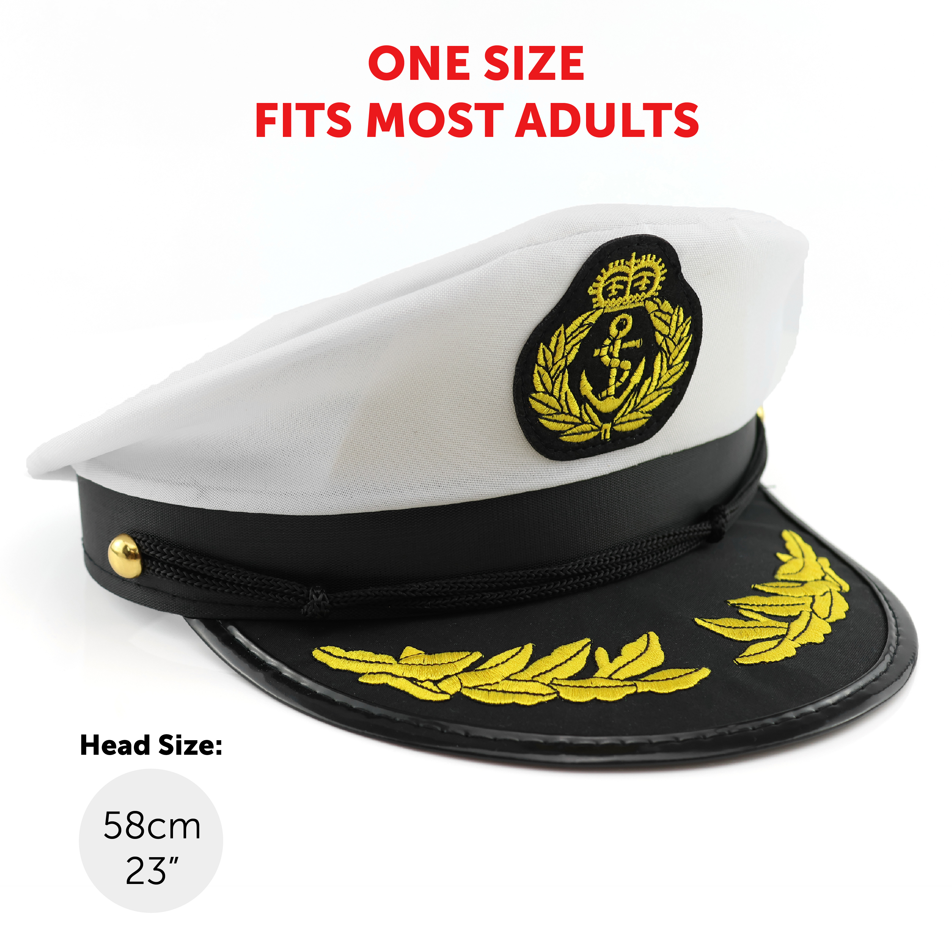 ONE SIZE FITS MOST: This Satin Captains Hat is designed to fit most Adults comfortably, with the head circumference measuring at 58cm (23")