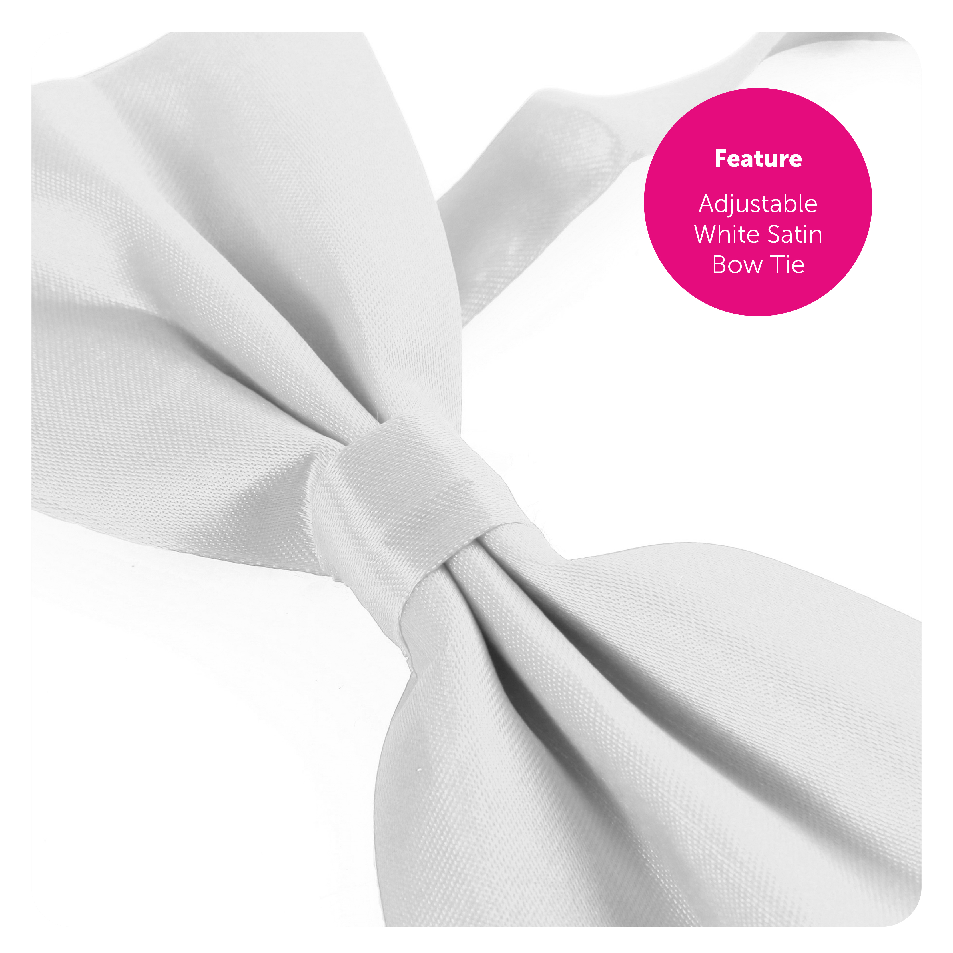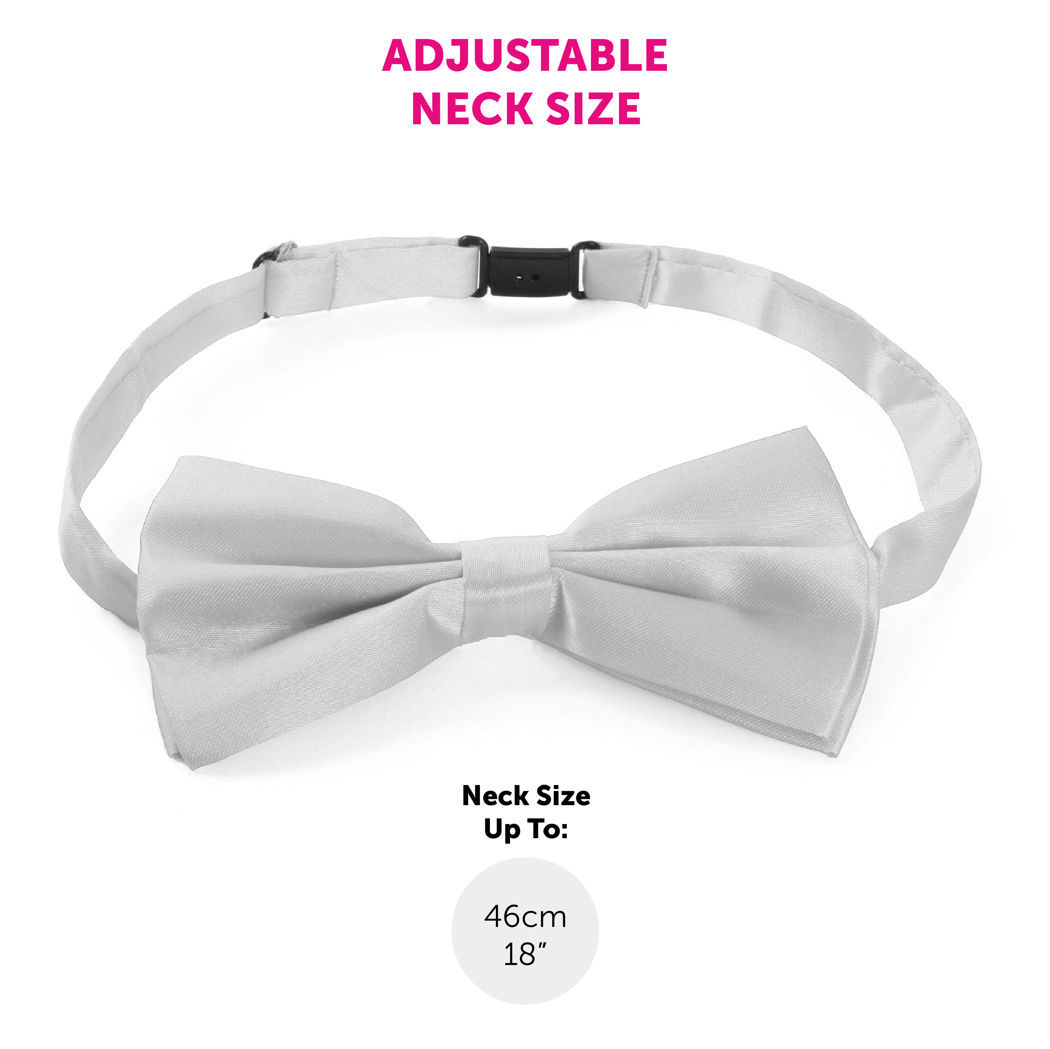 ONE SIZE FITS ALL: Your White Satin Bow Tie measures up to 46cm (18") and fits anyone perfectly, it can be adjusted to the desired length and size to fit your style comfortably and well!