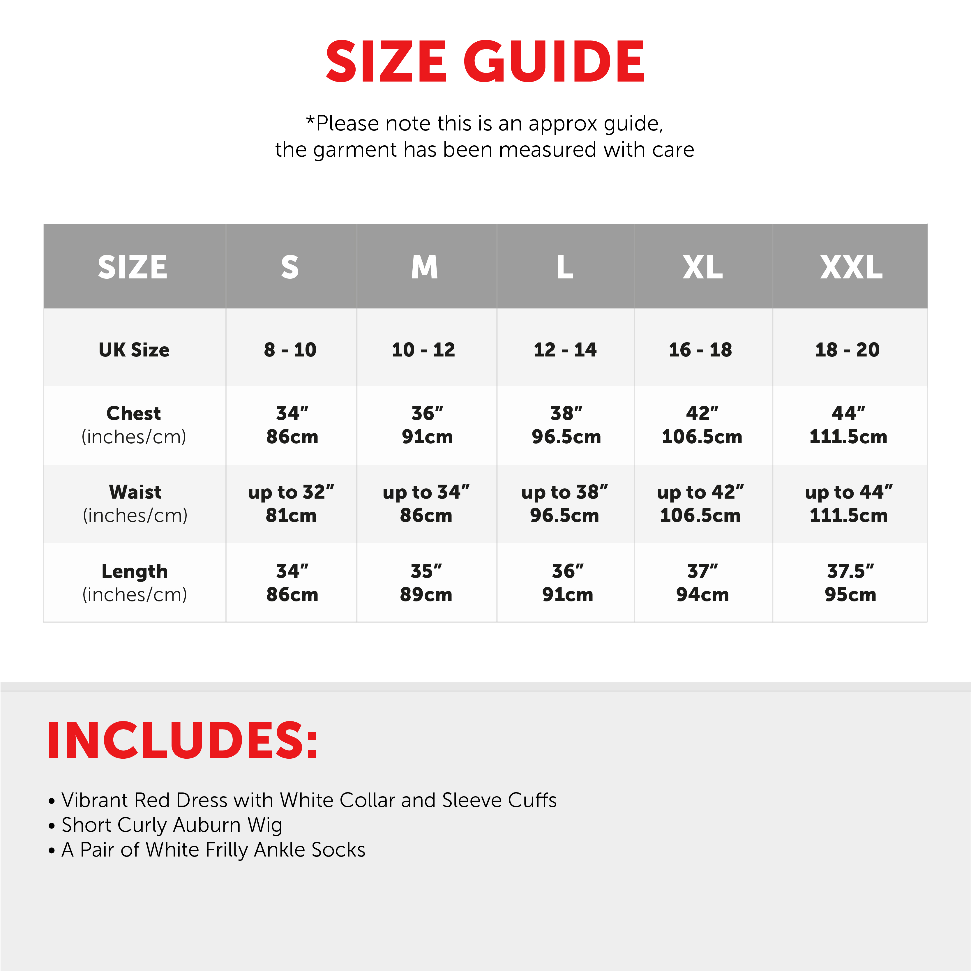 AMAZING QUALITY: The flash red colour of the dress is a standout and feels incredibly comfortable for how durable this dress truly is, a fancy dress costume that will last you for years to come as well as our authentic looking Auburn Wig!
