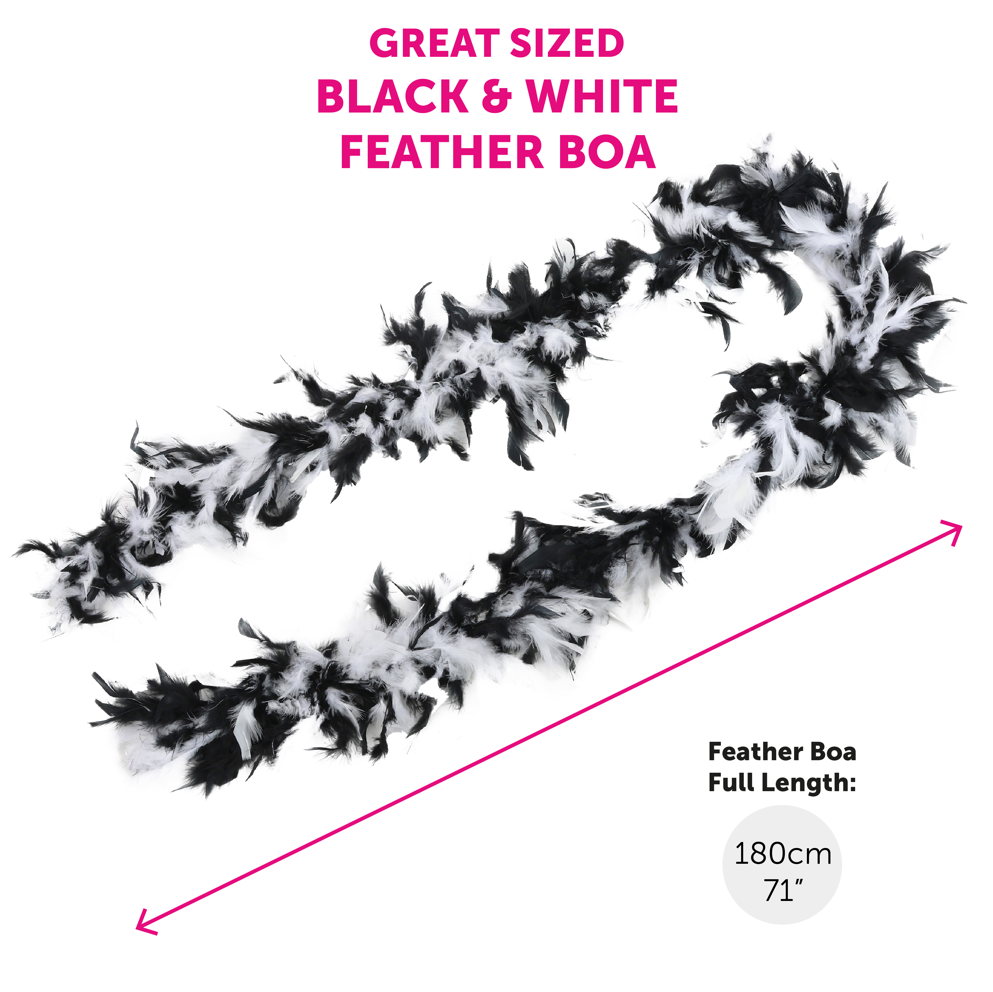 GREAT SIZED BOA: The Evil Dog Lady Set includesa Black and White Feather Boa that measures a length of 180cm (71"), great sized accessories that can be worn to any event!