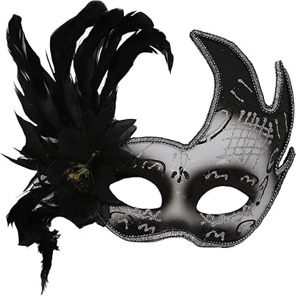 Black, White & Silver Masquerade Masks – Glitter Fancy Dress Accessories with Classic Design & Black Feathers £4.99