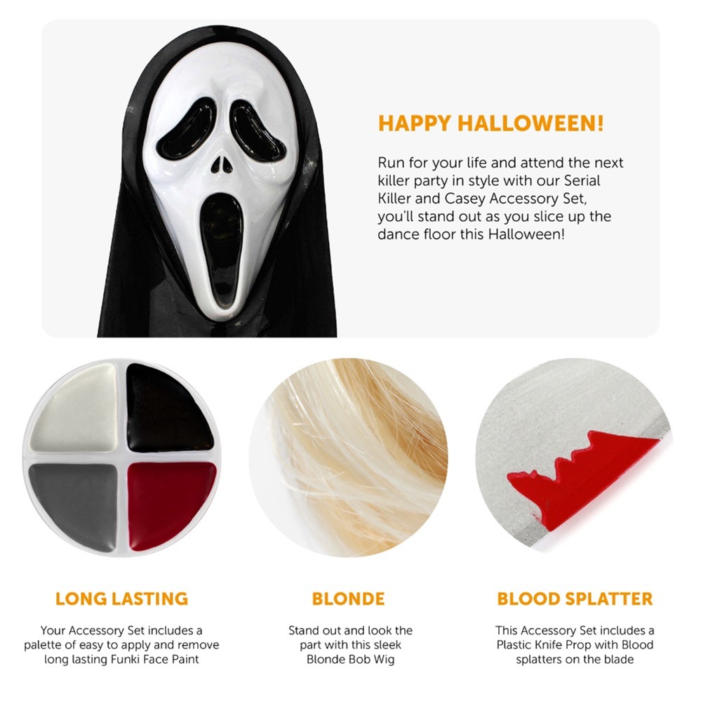 Run for your life and attend the next killer party in style with our Serial Killer and Casey Accessory Set — you’ll stand out as you slice up the dance floor this Halloween!