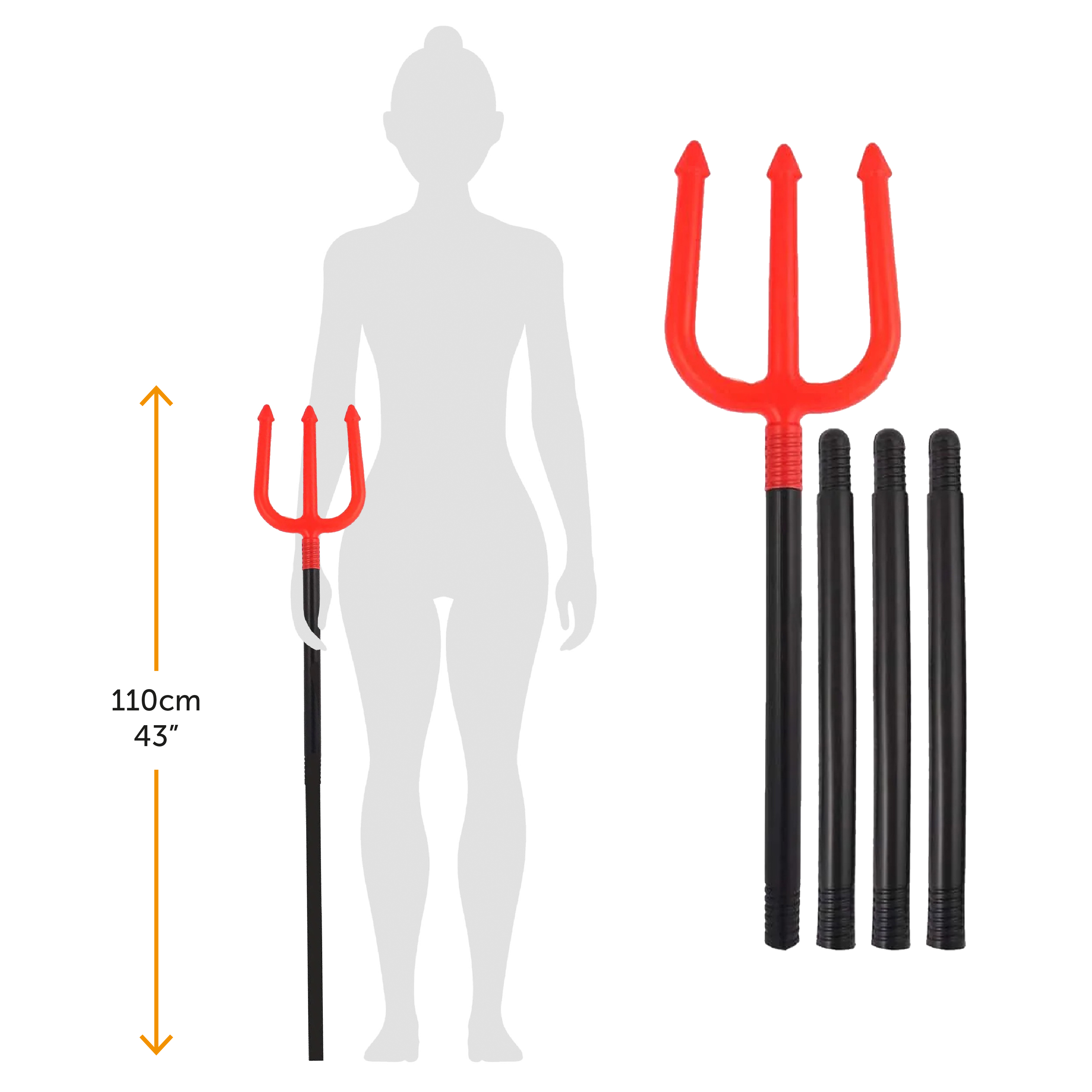 PERFECT SIZED PROP: The 4 Piece Plastic Devil Fork Trident measures a length of 110cm (43") once all 4 parts are fully assembled!