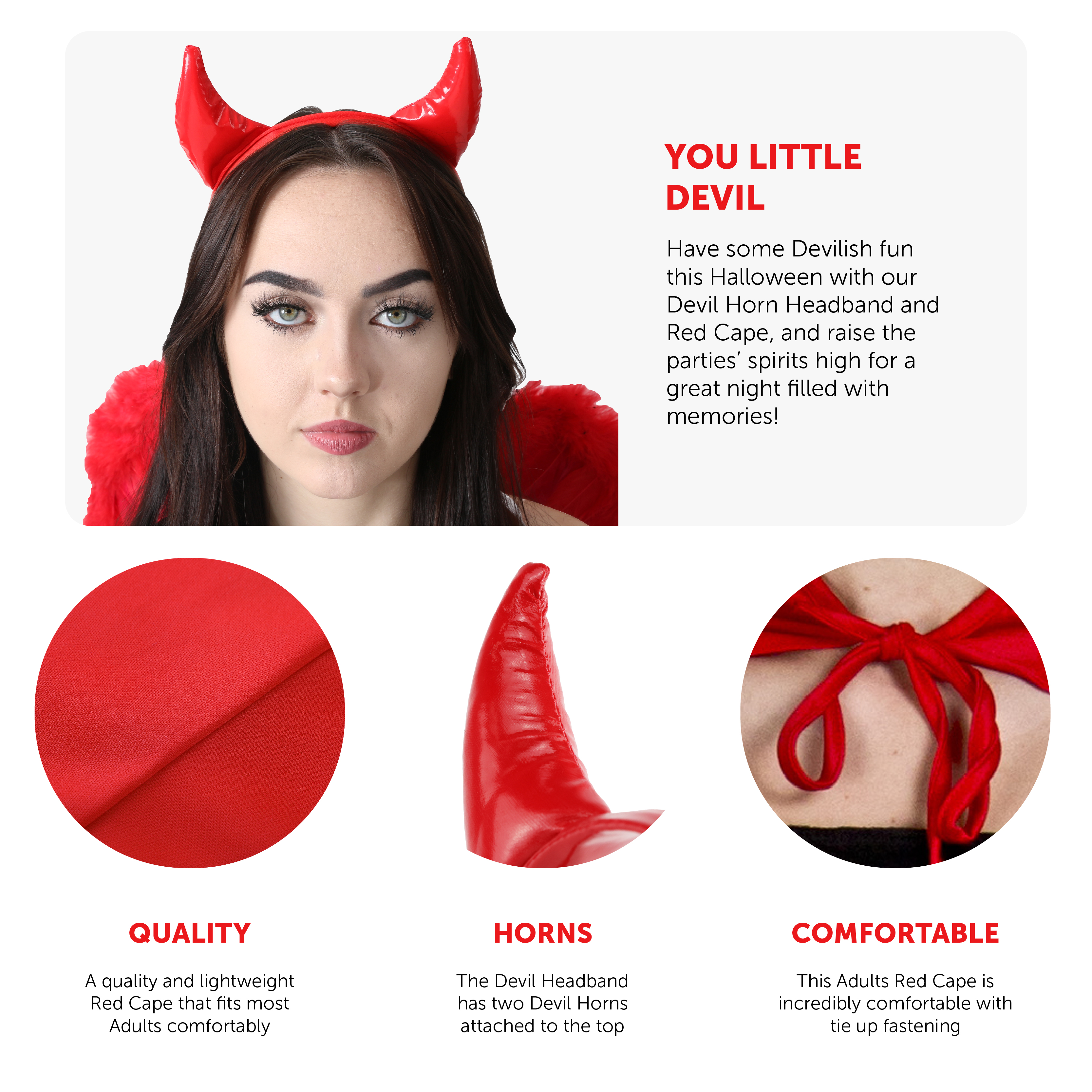 SET INCLUDES: This Devil Set includes a vibrant Red Headband with 2x matching Red Devil Horns attached to the top, and a Red Cape with easy fastening, the perfect Set to act Devilish all night long!