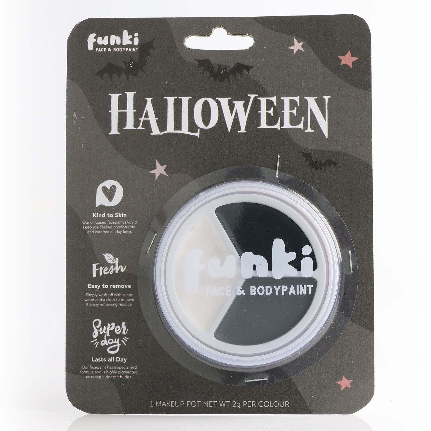 Includes a pot of Green and a pot of Grey, White and Black Face Paint to finish off your Halloween Look.