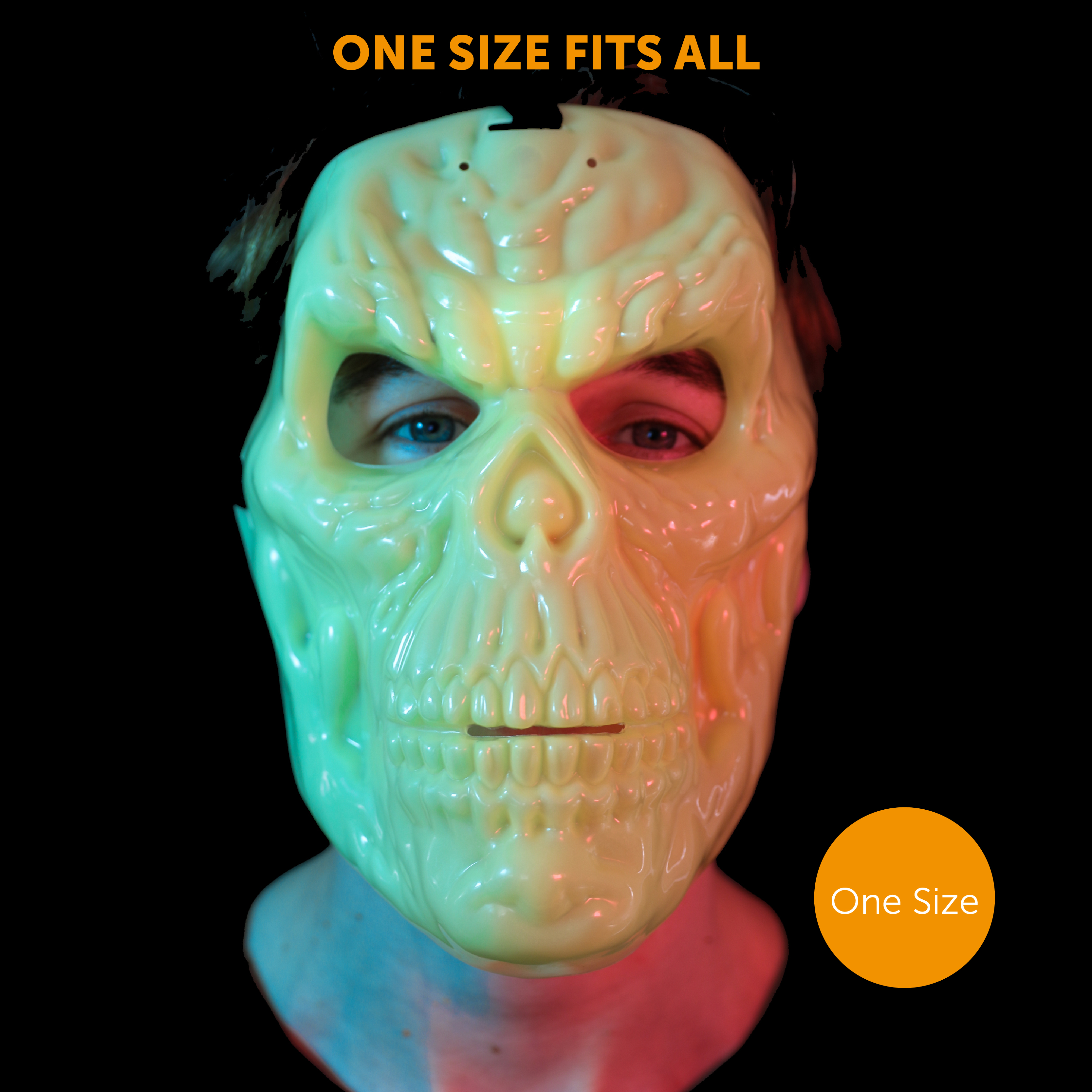 MASK DETAILS: This Halloween Skull Mask is made from high quality, Glow in the Dark plastic with an elasticated strap for extra comfort, and an easy-to-breathe mouth hole!