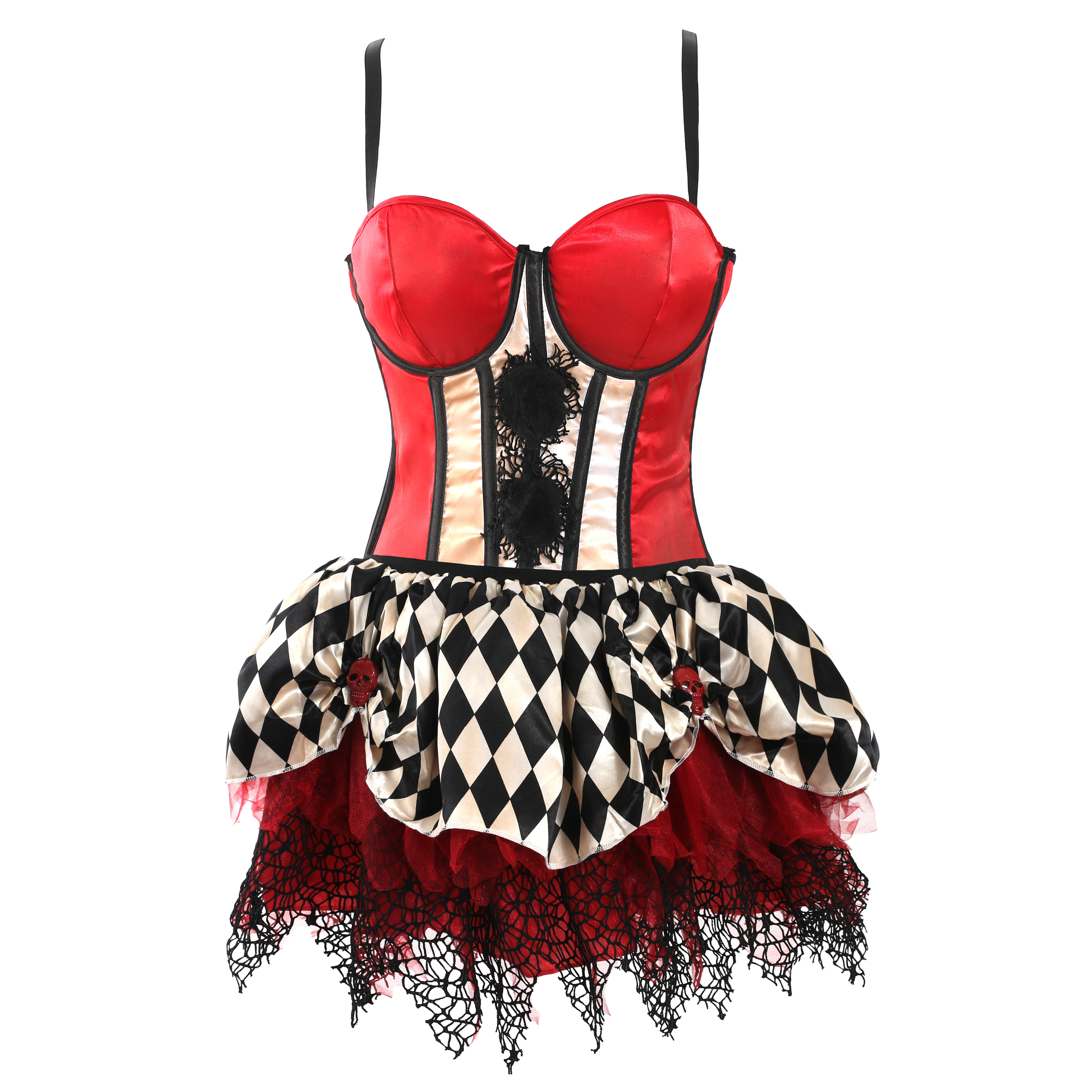 - Ladies' Clown Costume Harlequin Fancy Dress Corset and Tutu Costume