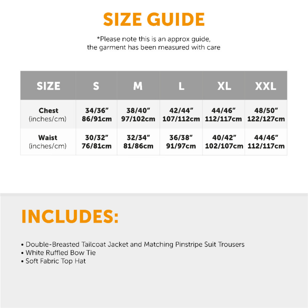 FANTASTIC COSTUME QUALITY: From the comfort and easy-to-wear material of our Black tailcoat, the comfortable fit and excellent quality of the trousers, and the prestigious feel and look of your Top Hat, you’re sure to make a killing with your looks!