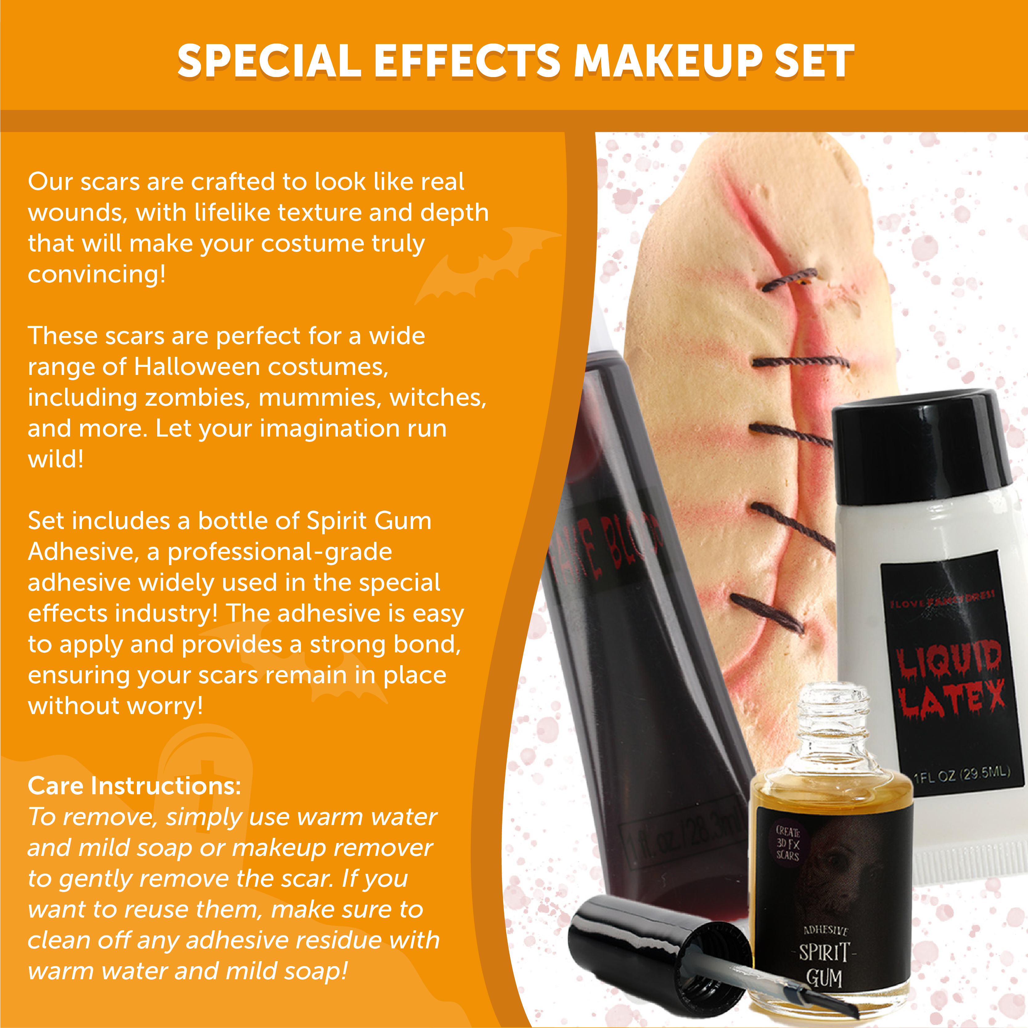 PERFECT FOR SPECIAL FX & HALLOWEEN: Whether you're creating your Fake Scars from scratch or want to finish off your outfit with a range of prosthetic Scars and Fake Blood, this Stitched Scar Set is perfect for the job!