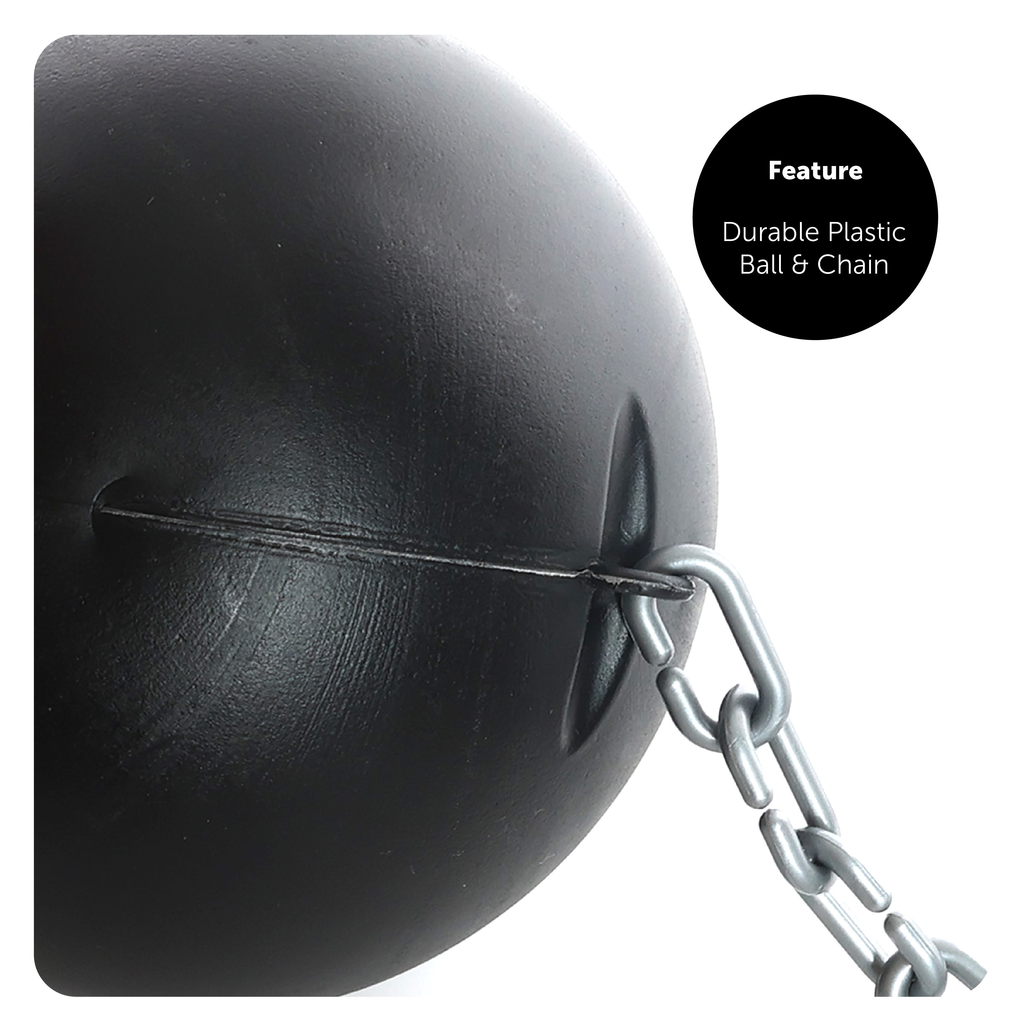 GREAT SIZED PROP: The Ball and Chain Prop is the perfect sized accessory for any costume, the Plastic Ball has a diameter of 11.5cm (4.5"), the Chain has a length of 15cm (6") and the Ankle Strap measures a size up to 30cm (12")
