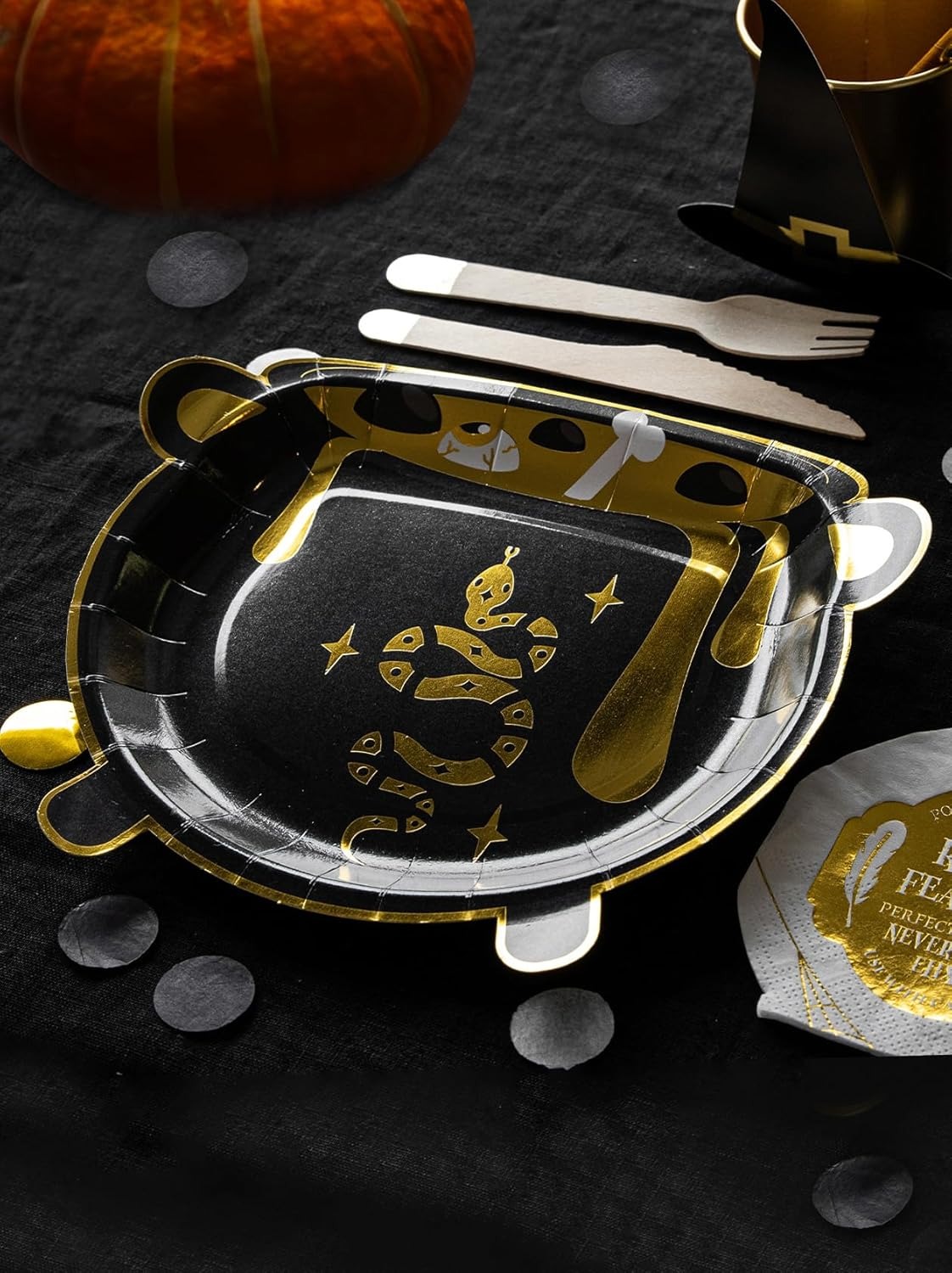 - Cauldron Paper Plates (Pack of 20): Themed plates shaped like bubbling cauldrons — perfect for snacks and treats.