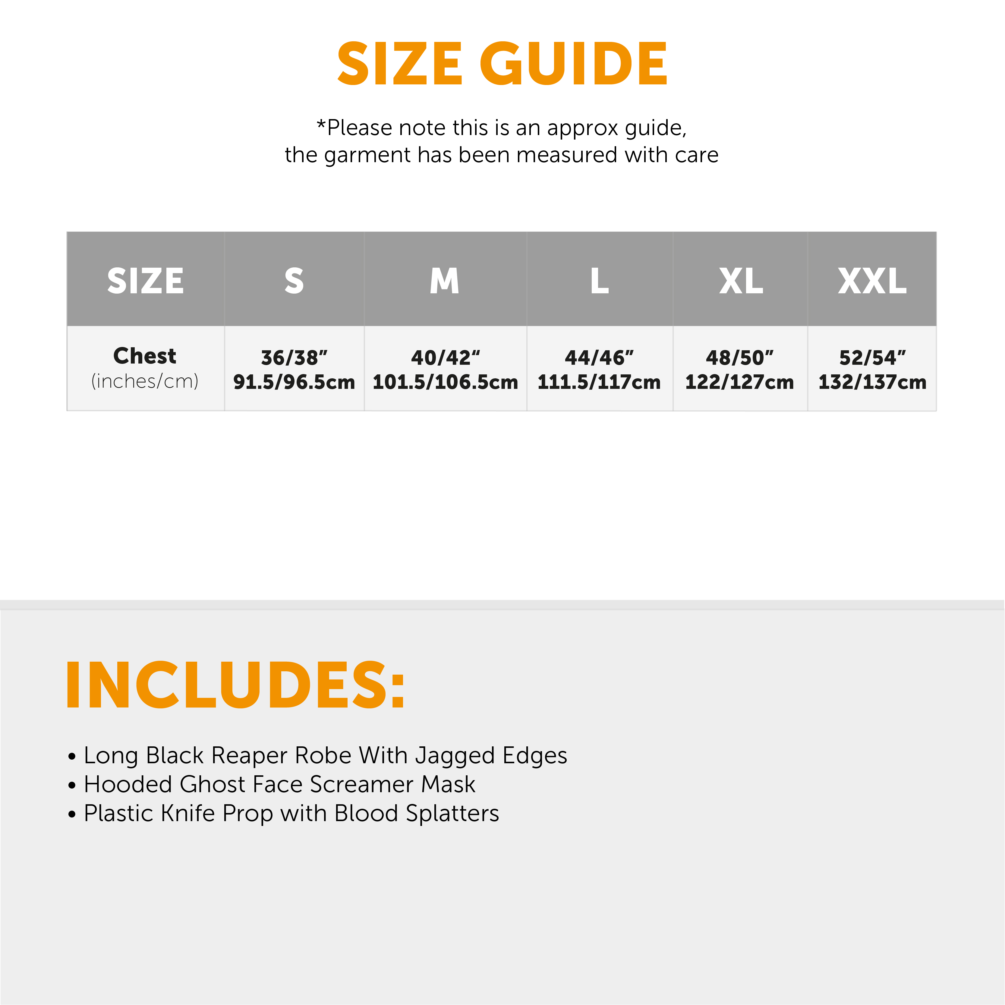 COSTUME INCLUDES: Your Adults Serial Killer Costume includes a Black Ragged Reaper Robe, a Hooded Ghost Face Screamer Mask, and a Plastic Knife Prop with Blood Splatters on the silver blade, the perfect look this Halloween!