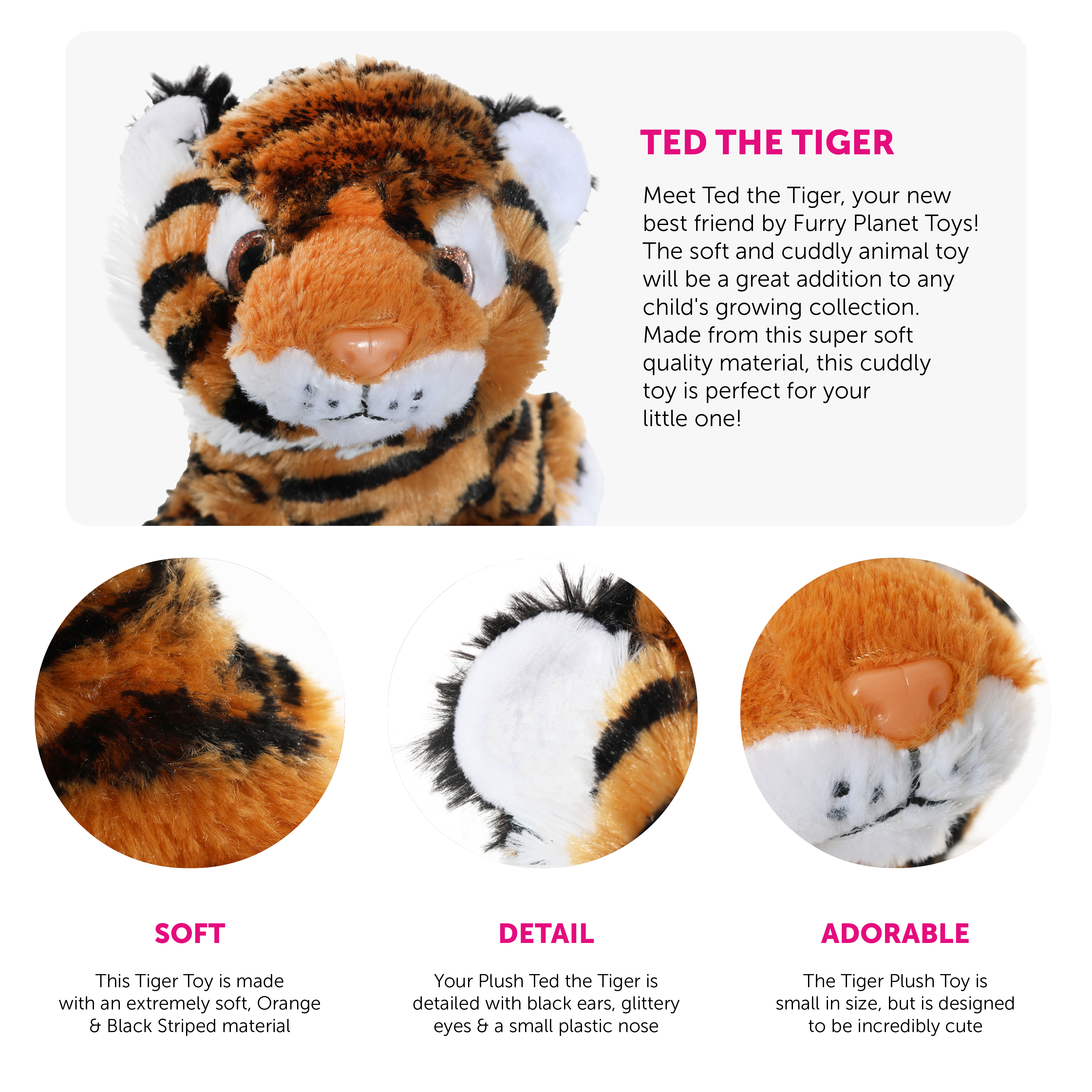 TED THE TIGER: Meet Ted the Tiger, your new best friend by Furry Planet Toys! The soft and cuddly animal toy will be a great addition to any child's growing collection. Made from this super soft quality material, this cuddly toy is perfect for your little one!