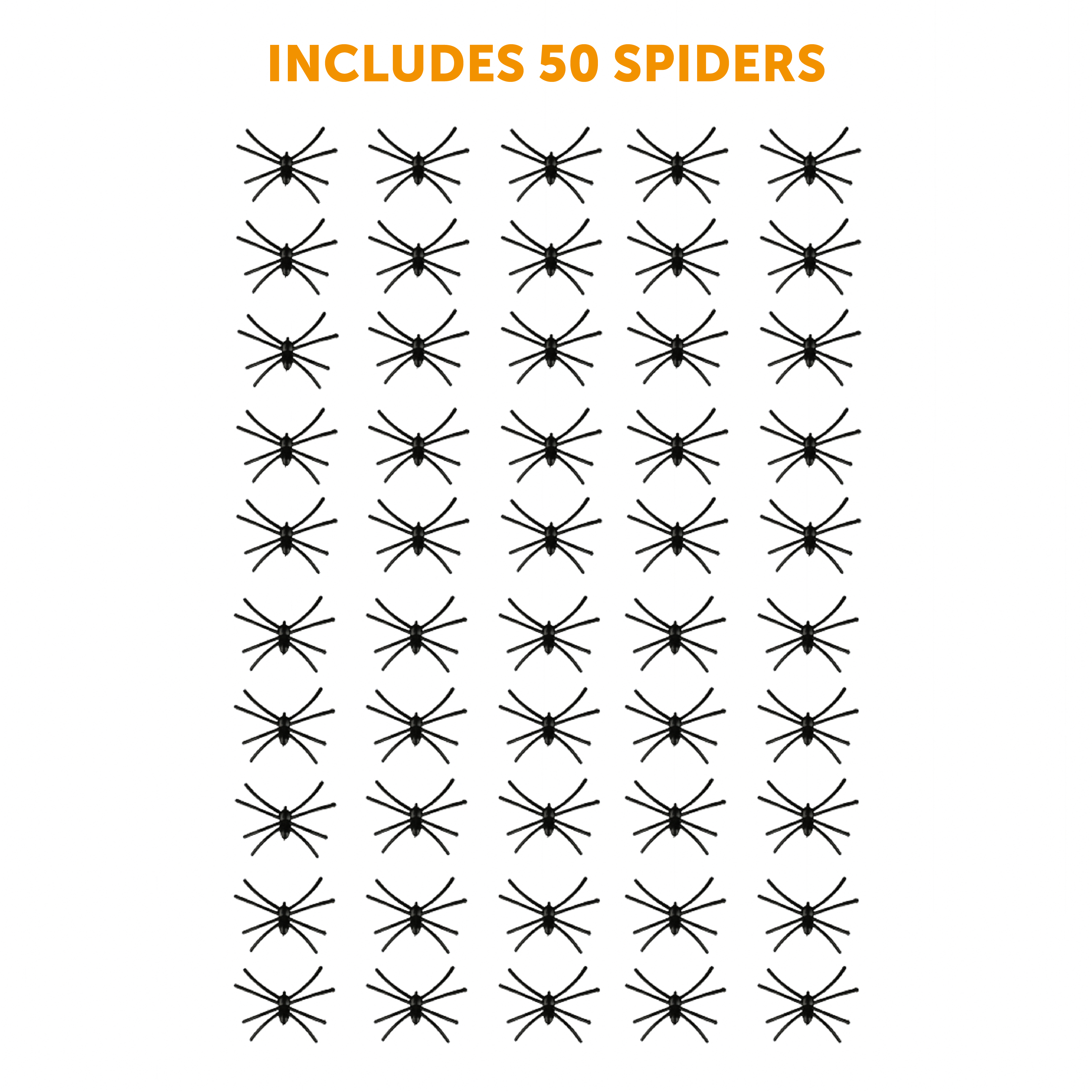 - SPIDER WEB 200G DETAILS: Your Spider Web Decoration pack is 200g and is a realistic-looking and stretchable spider web, able to be strung and hung in any corner, over furniture, and can be easily removed after use, included with 50 Prop Spiders!