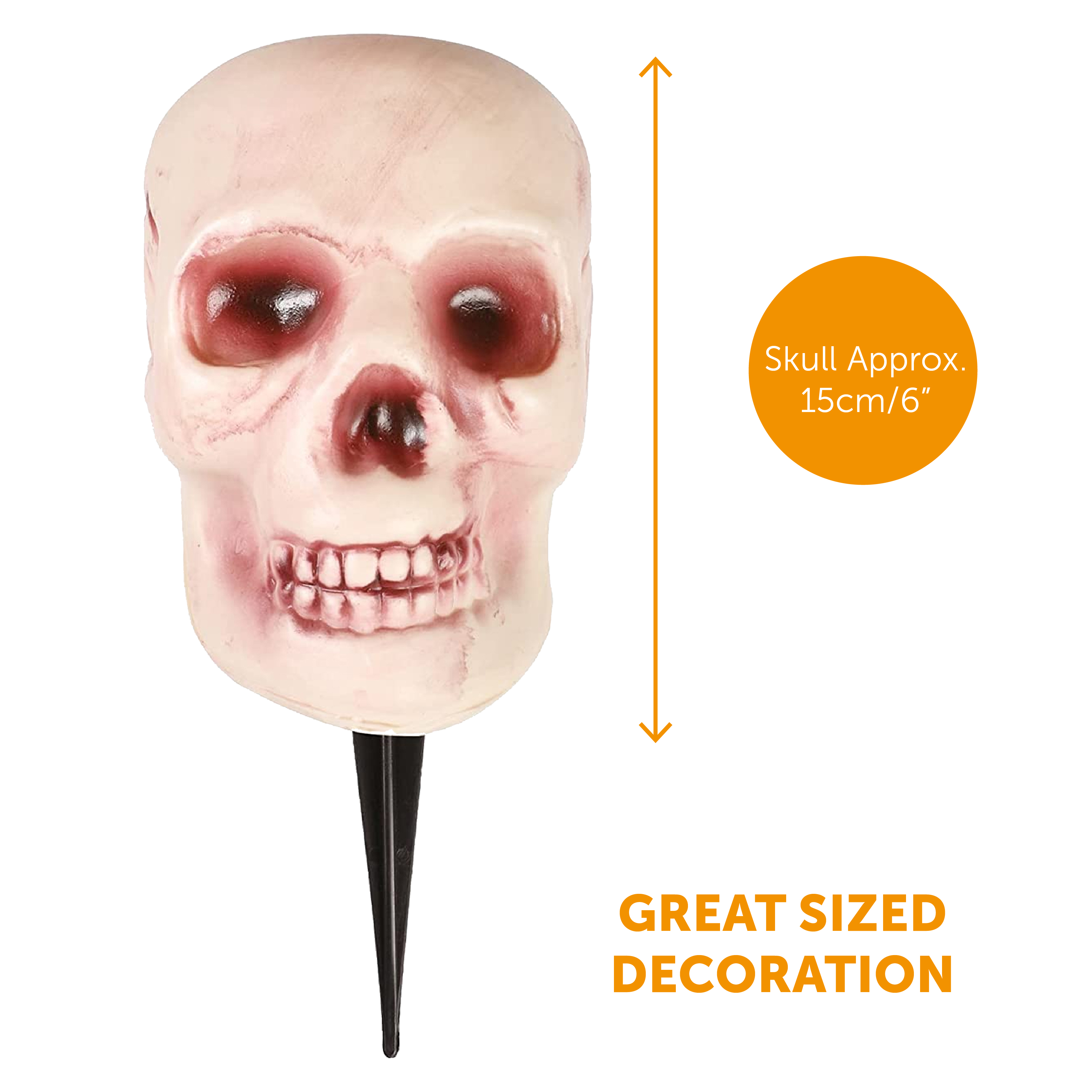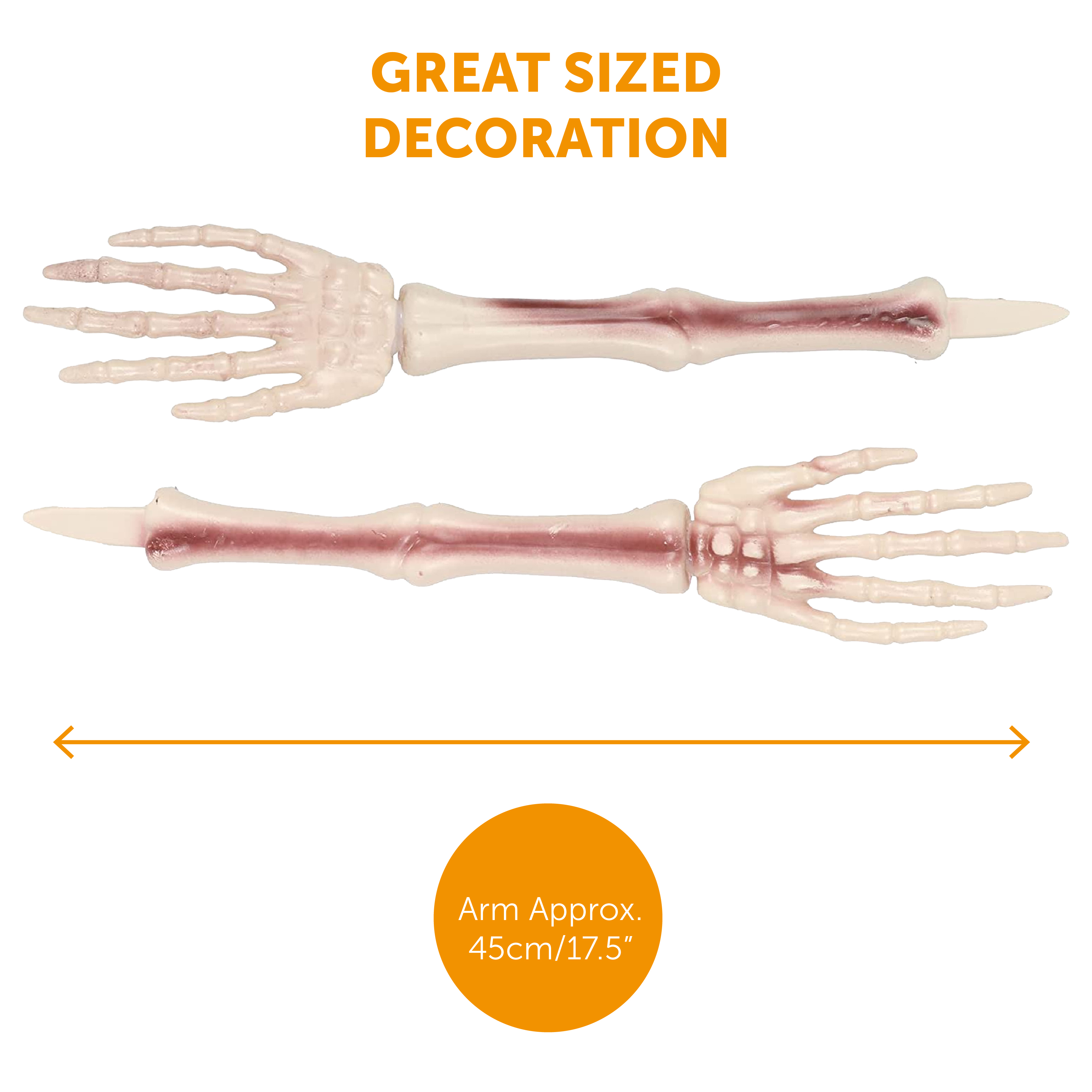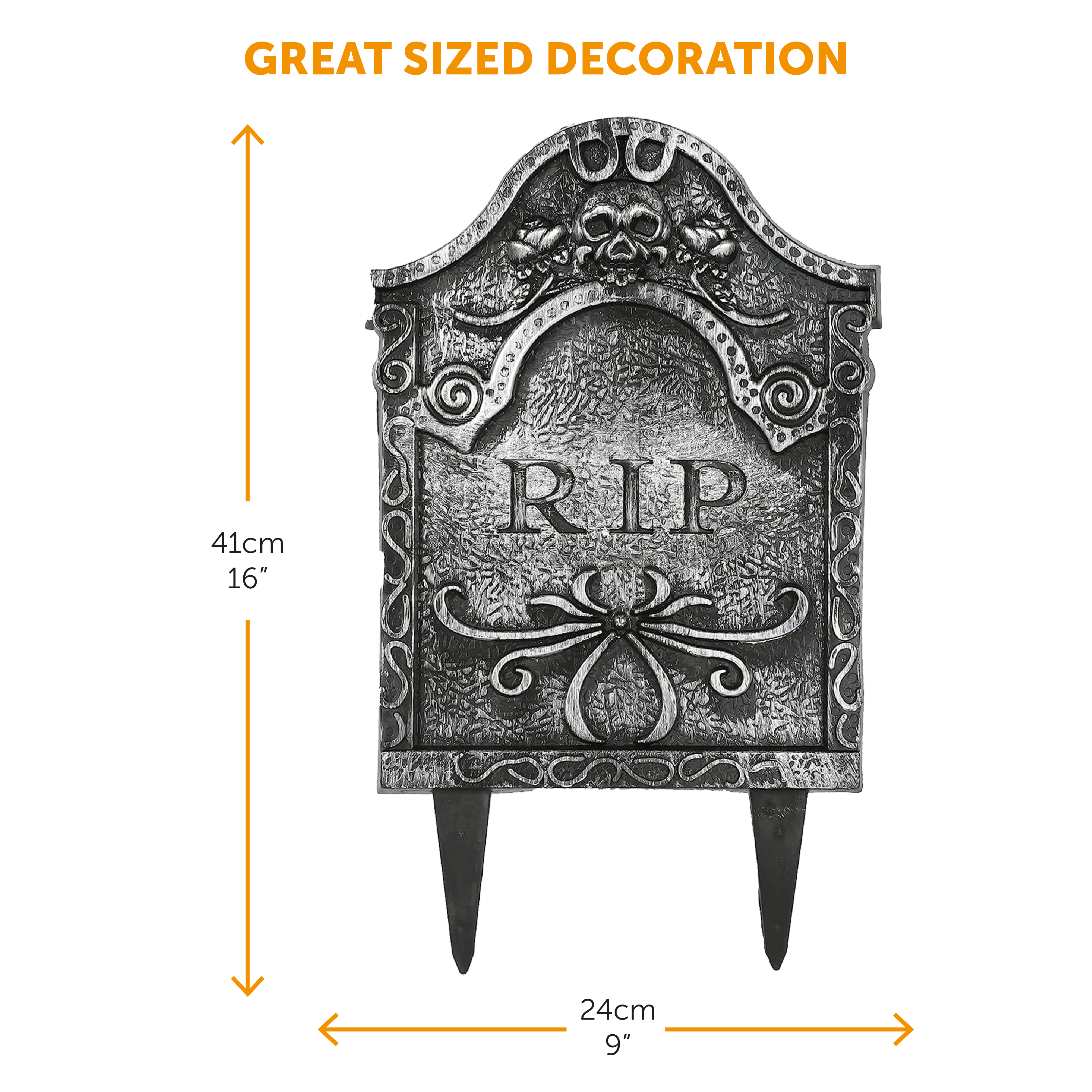GREAT SIZED DECORATIONS: The Tombstone and Skeleton Decoration Halloween pieces are a great size to add to your display! The Plastic RIP Tombstone Sign measures a height of 41cm (16") and a width of 24cm (9"), and the Groundbreaking Skeleton's Skull measures an approximate height of 15cm (6"), and the Arms measure a length of 45cm (17.5cm)
