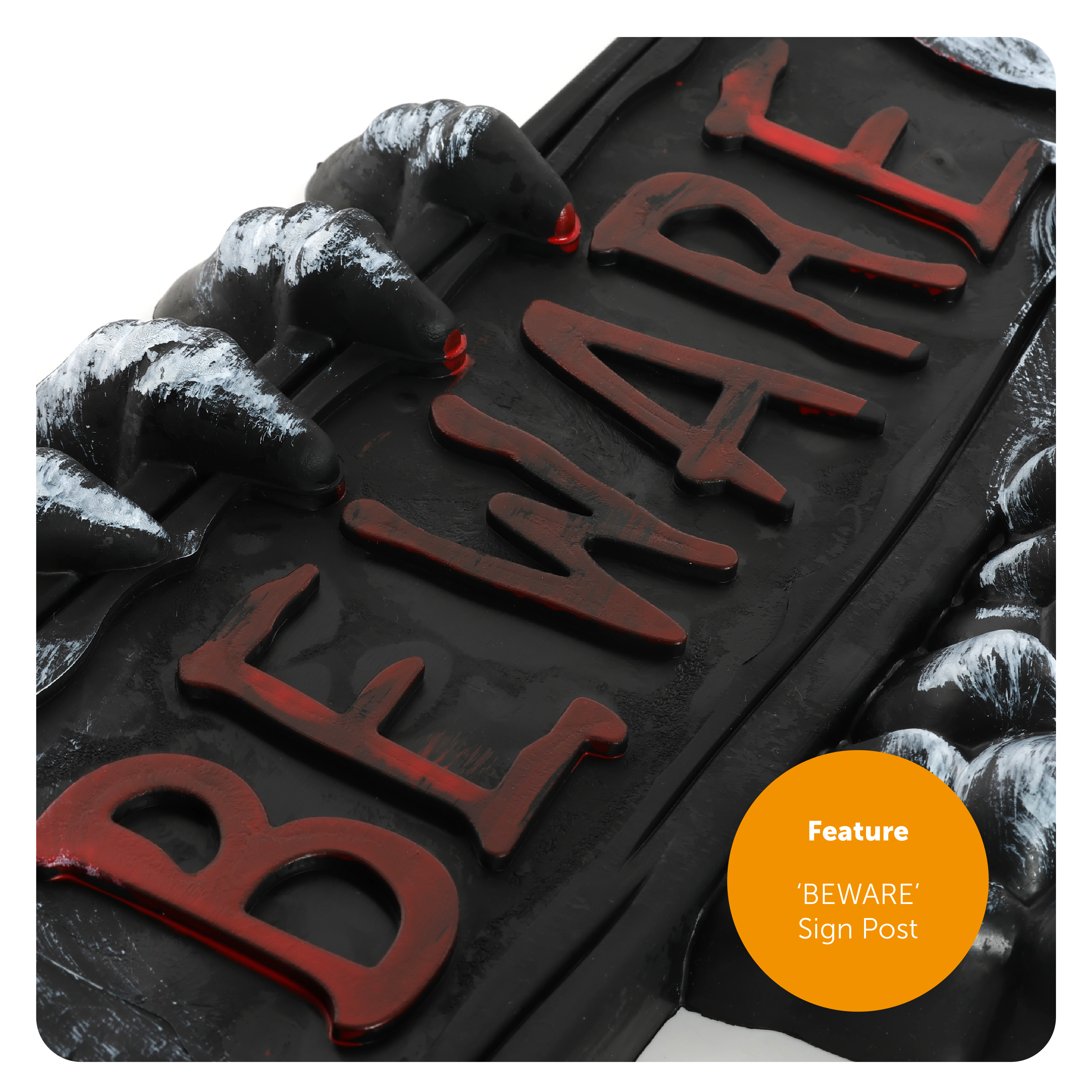 HALLOWEEN BEWARE SIGN DECORATION: You’ll be sure to put the fright into approaching trick or treater's every Halloween with your Halloween Beware Sign Decoration!
