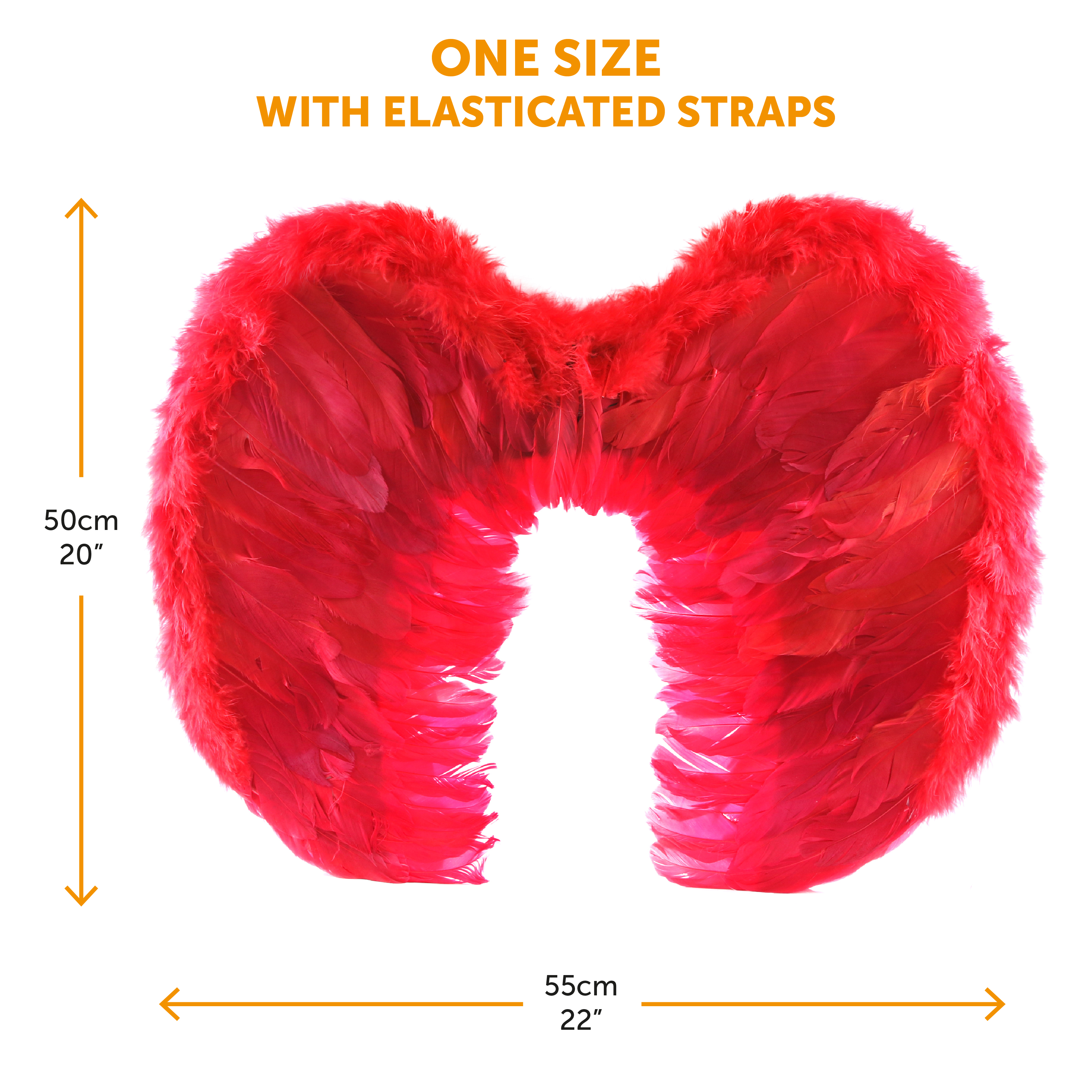 ONE SIZE FITS MOST: The Devil Horn Headband and Red Feather Wings are designed to fit most Adults comfortably by being a suitable one size!