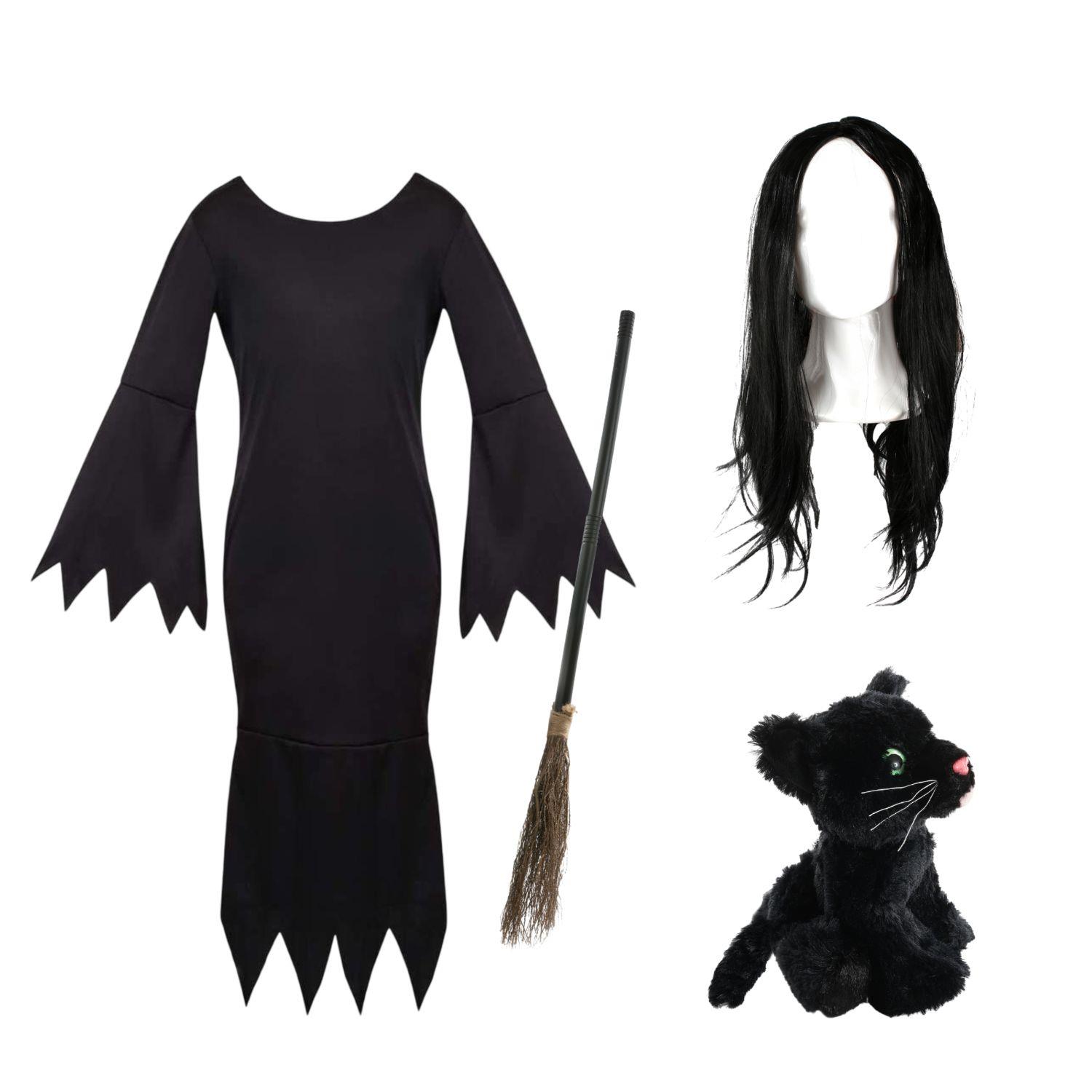 Girls Dani Witch Costume | 4 Pcs | Dress, Broom, Cat Toy & Wig